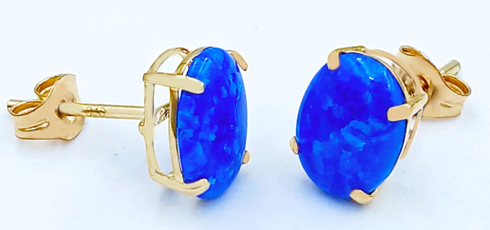 GENUINE 2.06 Cts BLUE OPAL STUD EARRINGS 14k YELLOW GOLD - Free Appraisal - NWT