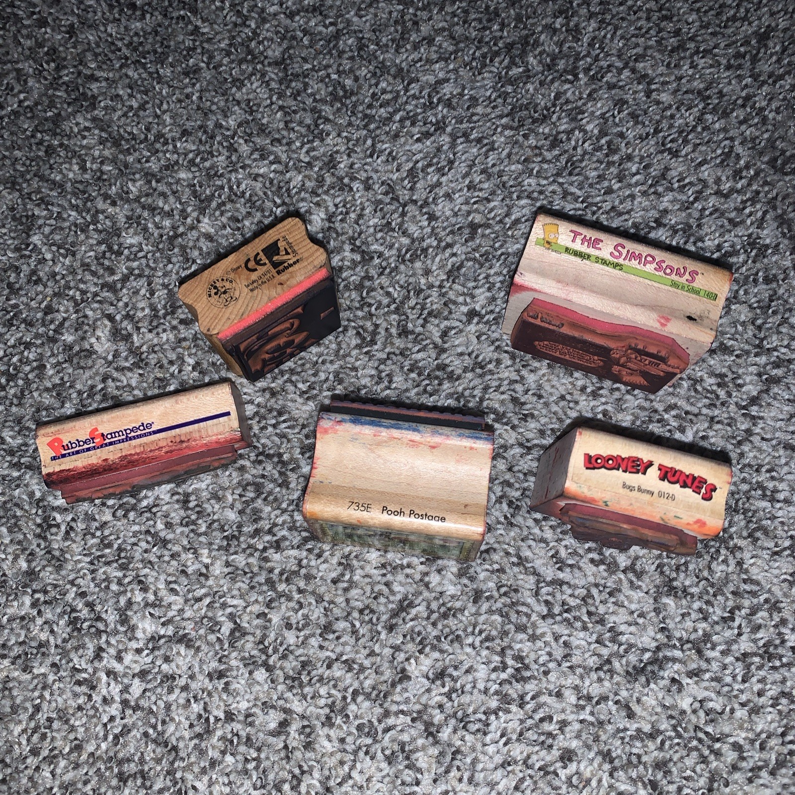 Vintage Assorted Rubber Stamp Lot Wood Mount Various Disney Looney Simpsons More