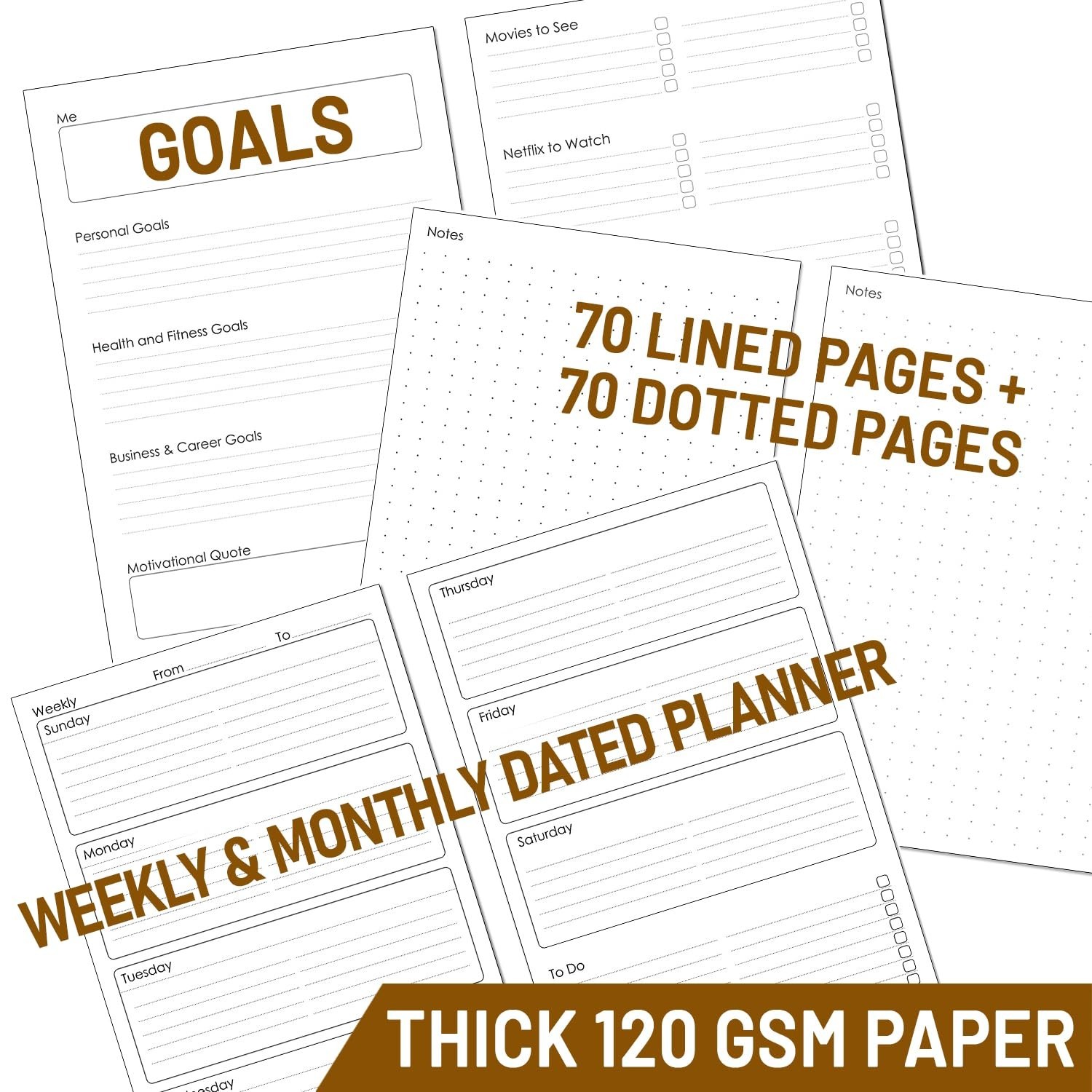 WANDERINGS A5 Leather Binder Planner - Refillable 6 Ring Journal with Inner P...