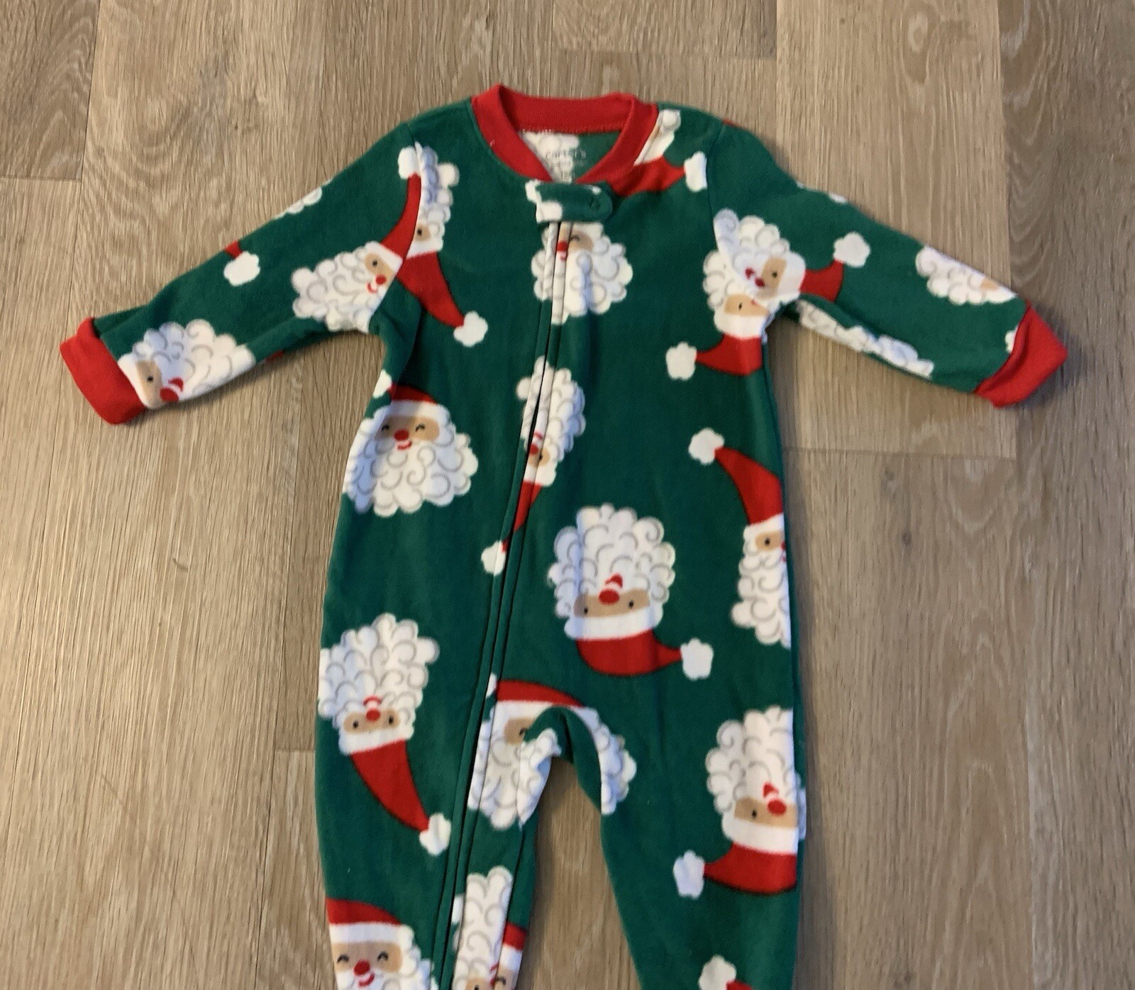 как выглядит NWOT Carter s Boy s Size 12 Months Green White Fleece Santa Claus Pajamas фото