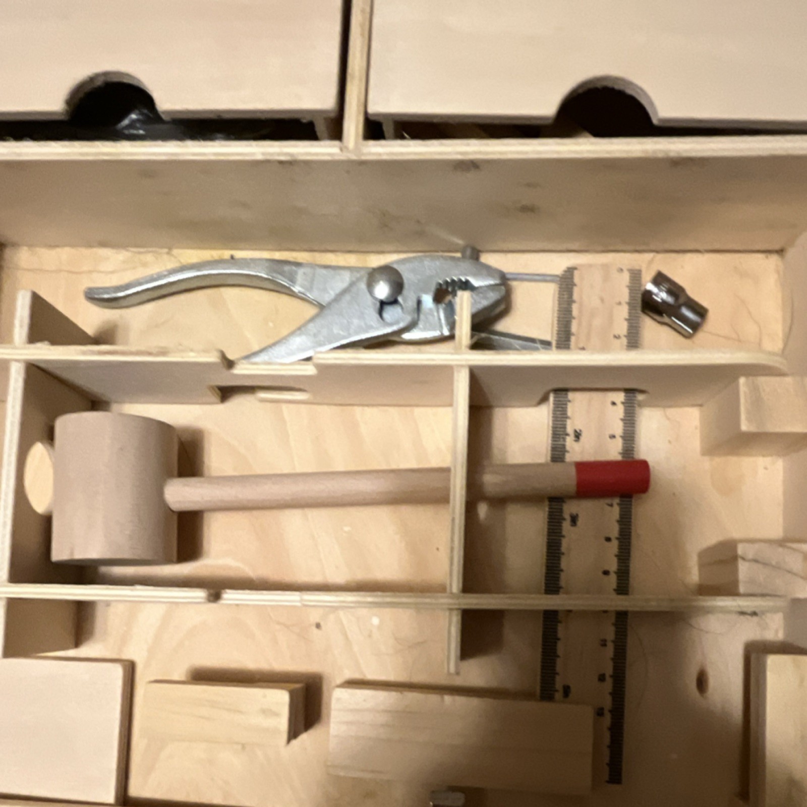 как выглядит Wooden Pretend Play Tool Set with Case, Screwdrivers, Mallet, Clamp, Ruler фото