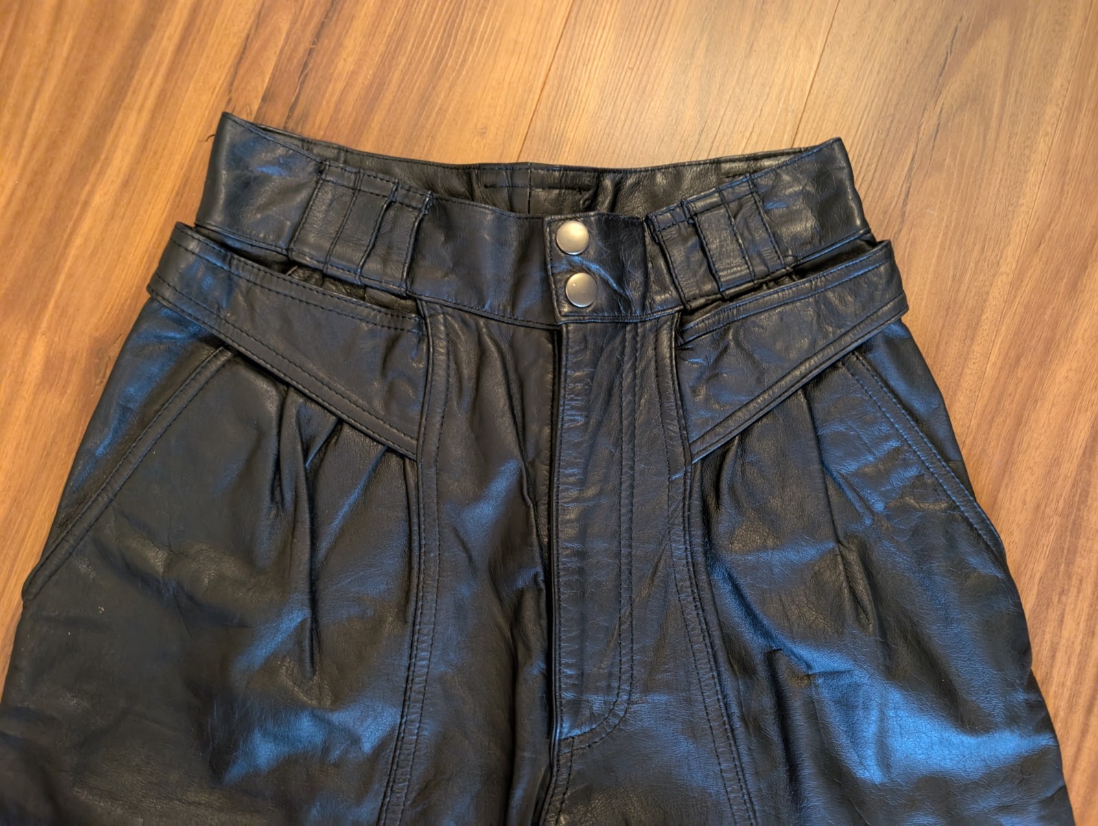 как выглядит I.O.U. Vintage Leather Soft Black 80s High Waist Goth Punk Pants Women