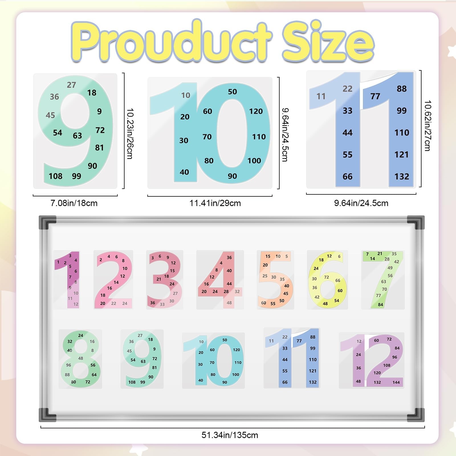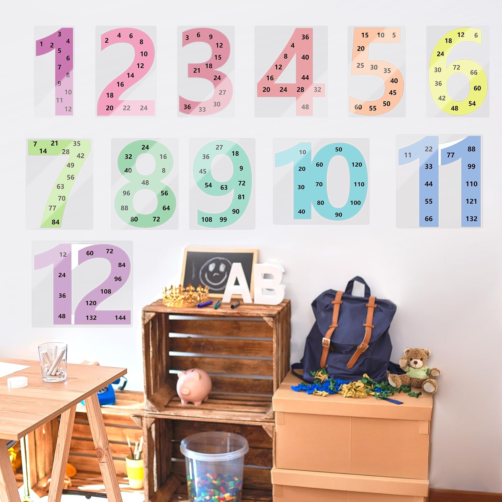 12Pcs Large Math Posters from 1 to 12 Counting Numbers Multiplication Chart P...