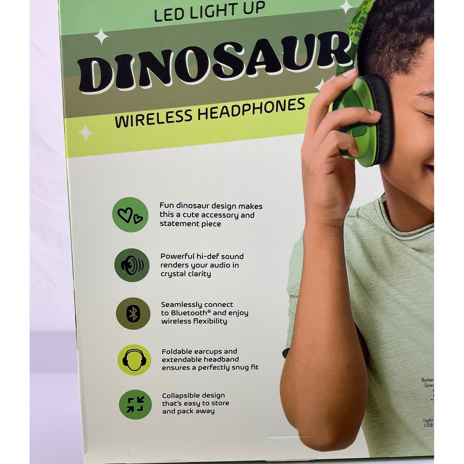 Art Sound LED Light Up Dinosaur Wireless Headphones Bluetooth Green Kids