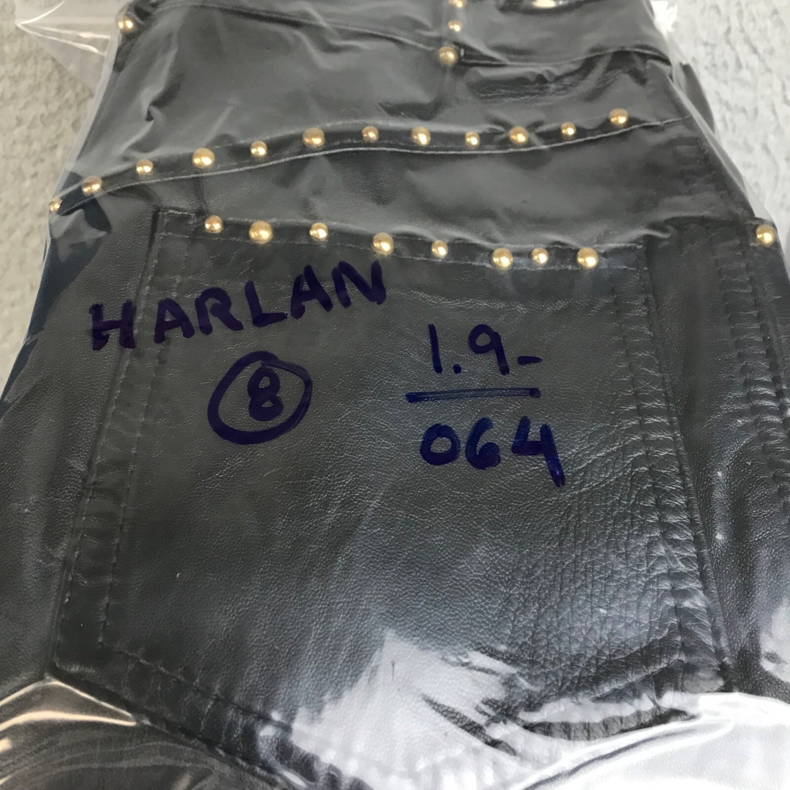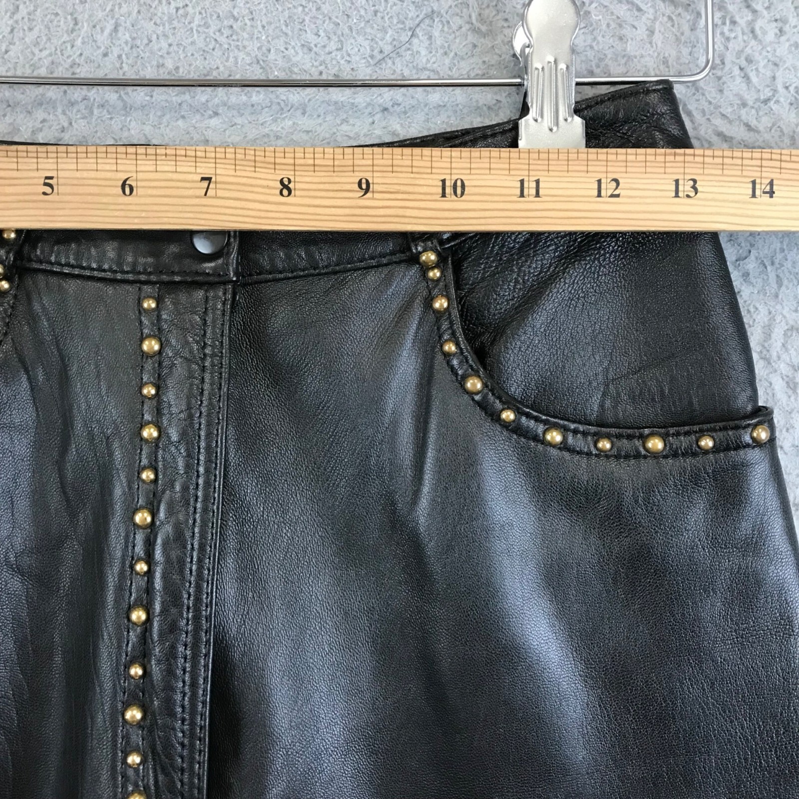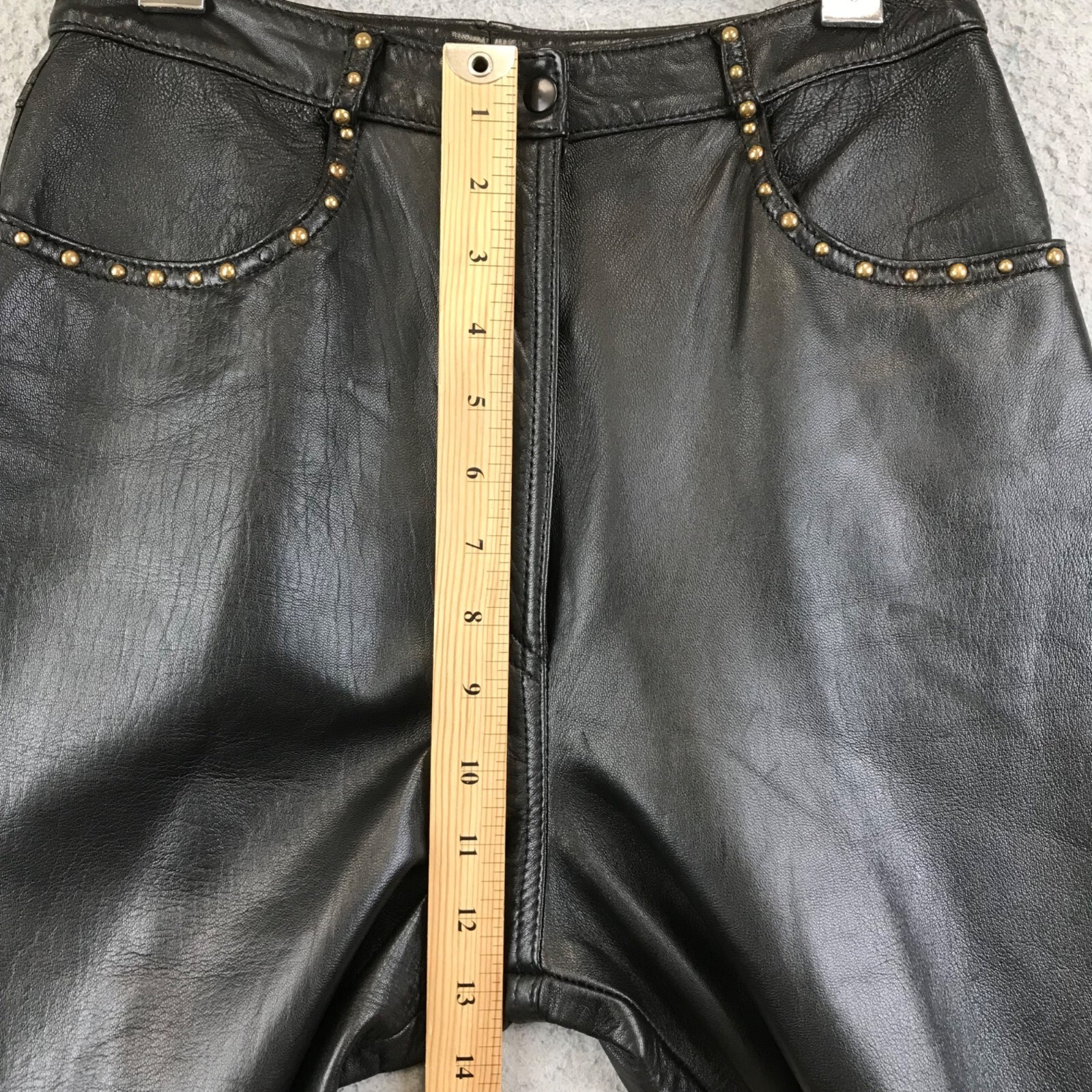 как выглядит Vintage 90s HARLAN Black leather pant studded size 8 фото
