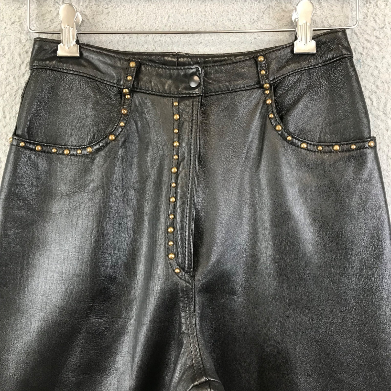 Vintage 90s HARLAN Black leather pant studded size 8