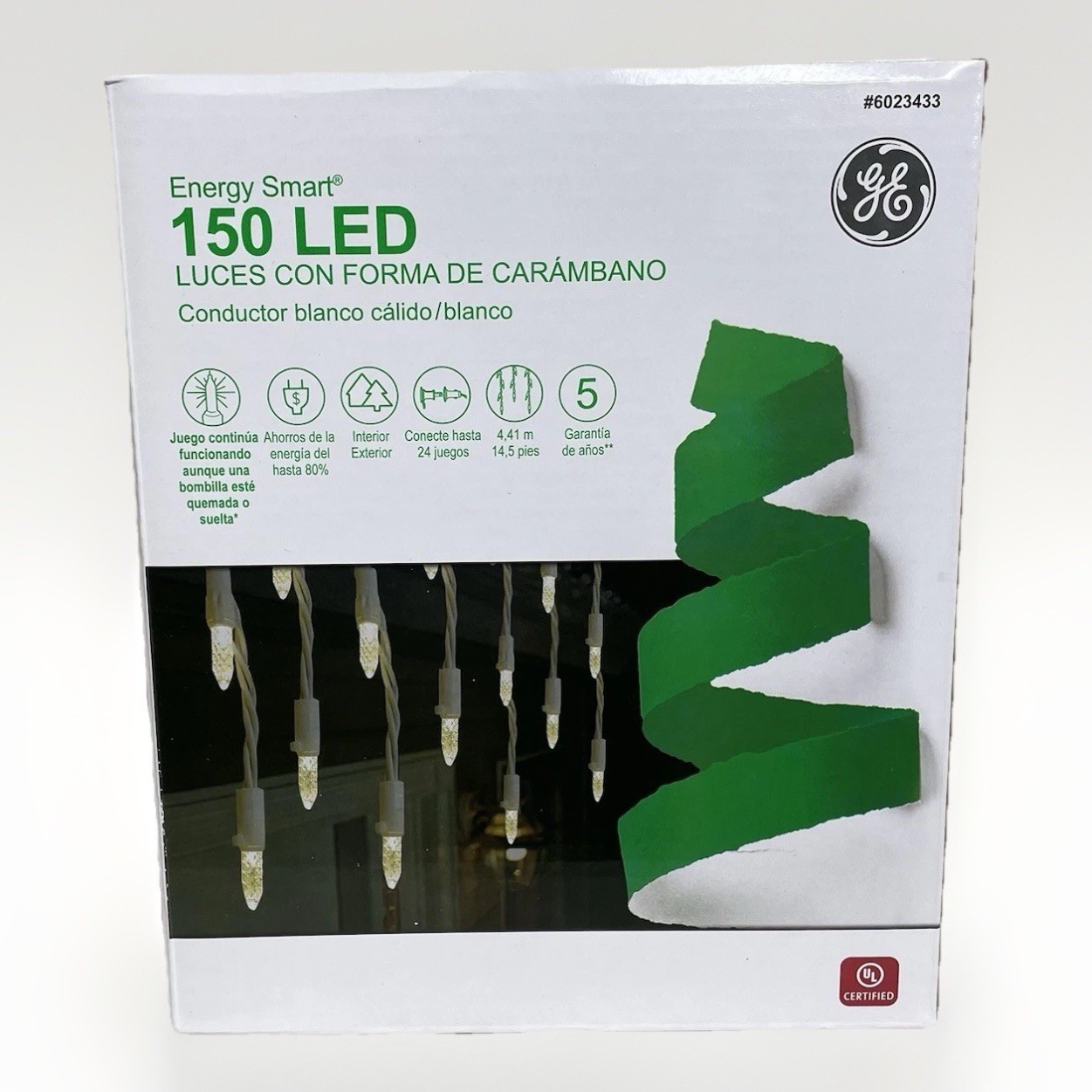 GE Warm White LED Energy Smart 150Ct Christmas Wedding Icicle Lights Faceted New