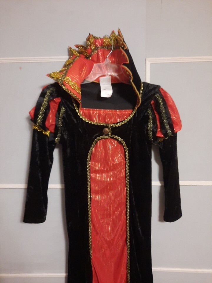 как выглядит Renaissance Queen Costume Dress Childs L Velvet Medieval Royal Princess Rubies фото