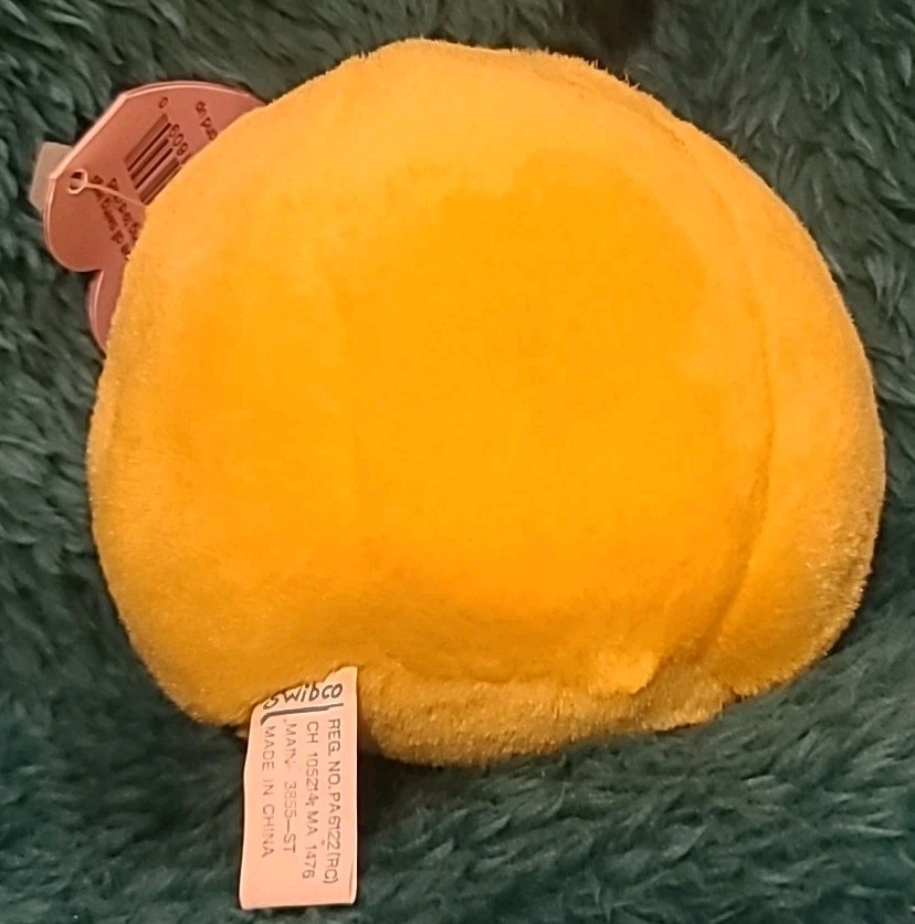 как выглядит 1998 Swibco Puffkins - HAPPY - Stuffed Plush Yellow Smiley Face 6684 - Vintage фото