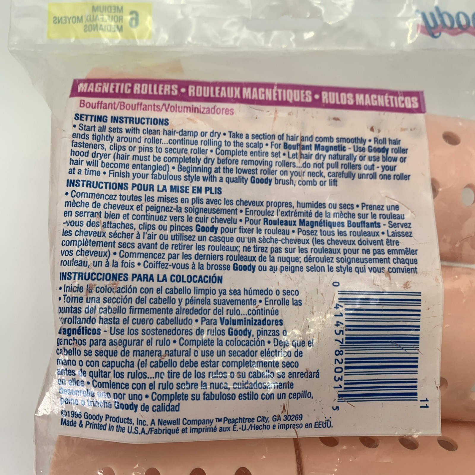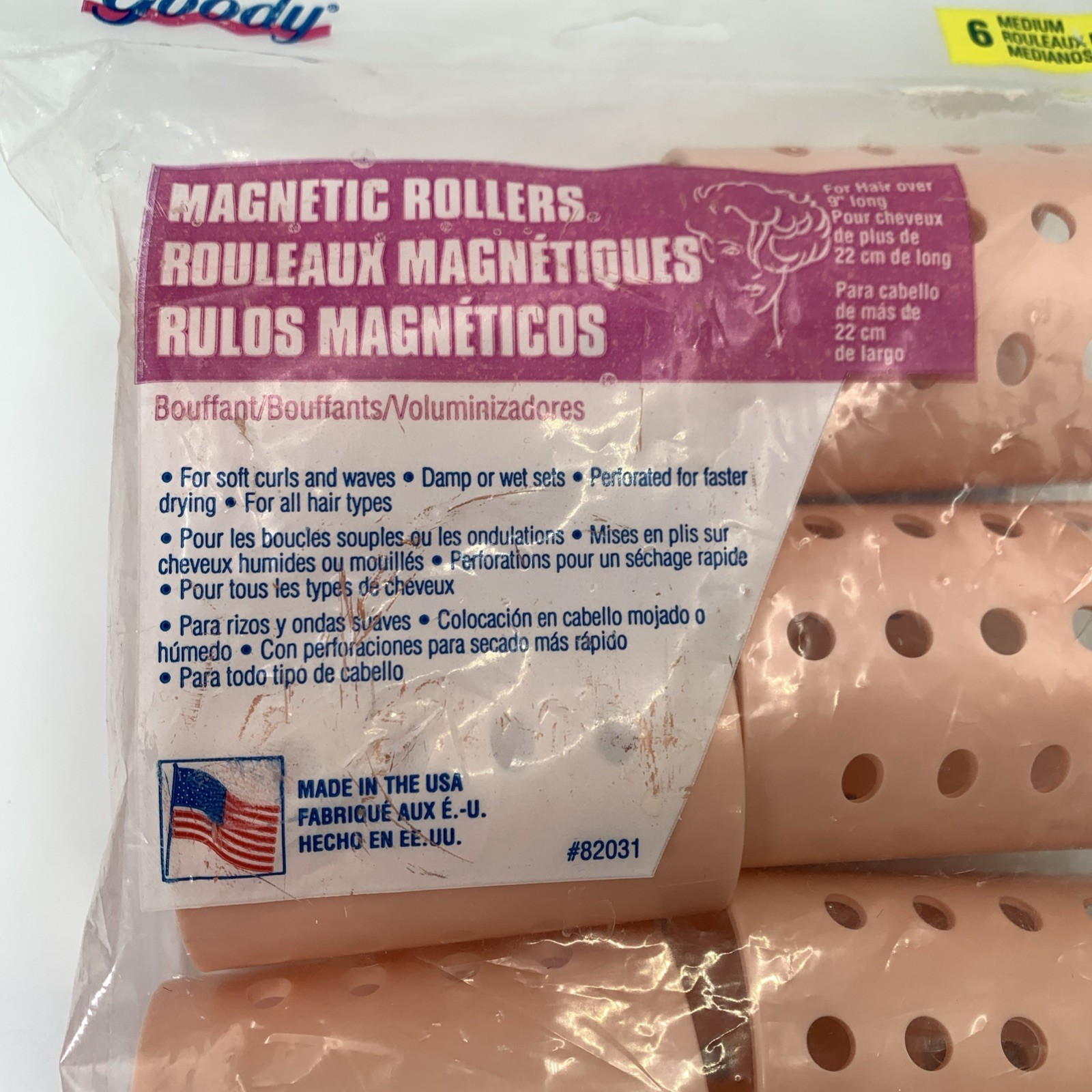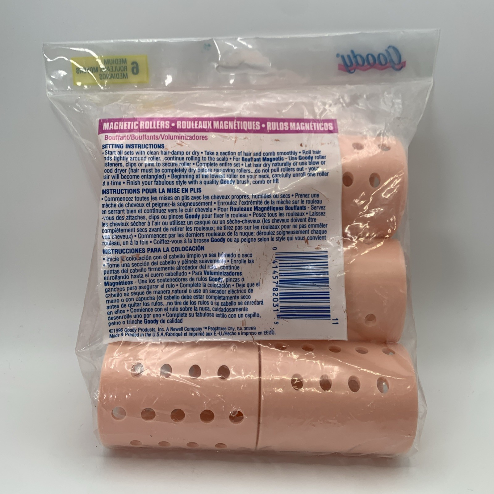 VTG Goody Magnetic Rollers 6 Medium Bouffant Pink Soft Curls Waves 82031