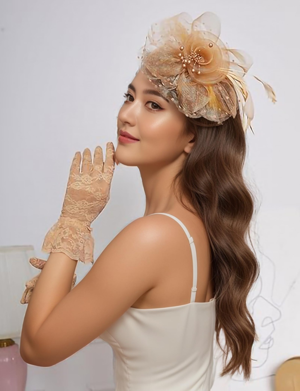 2PC Women's Fascinator and Lace Glove Wedding Tea Party Fascinator Hats with ...