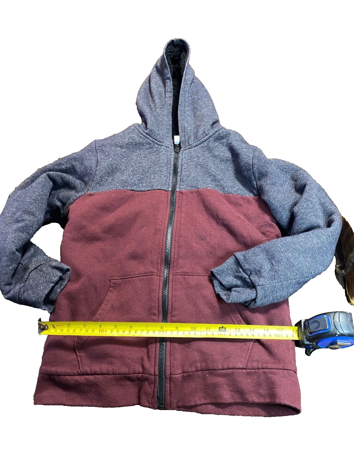 Old Navy Kids Boys Solid Black Cozy Warm Fleece Hooded Zip-Up Jacket Grey Burgan
