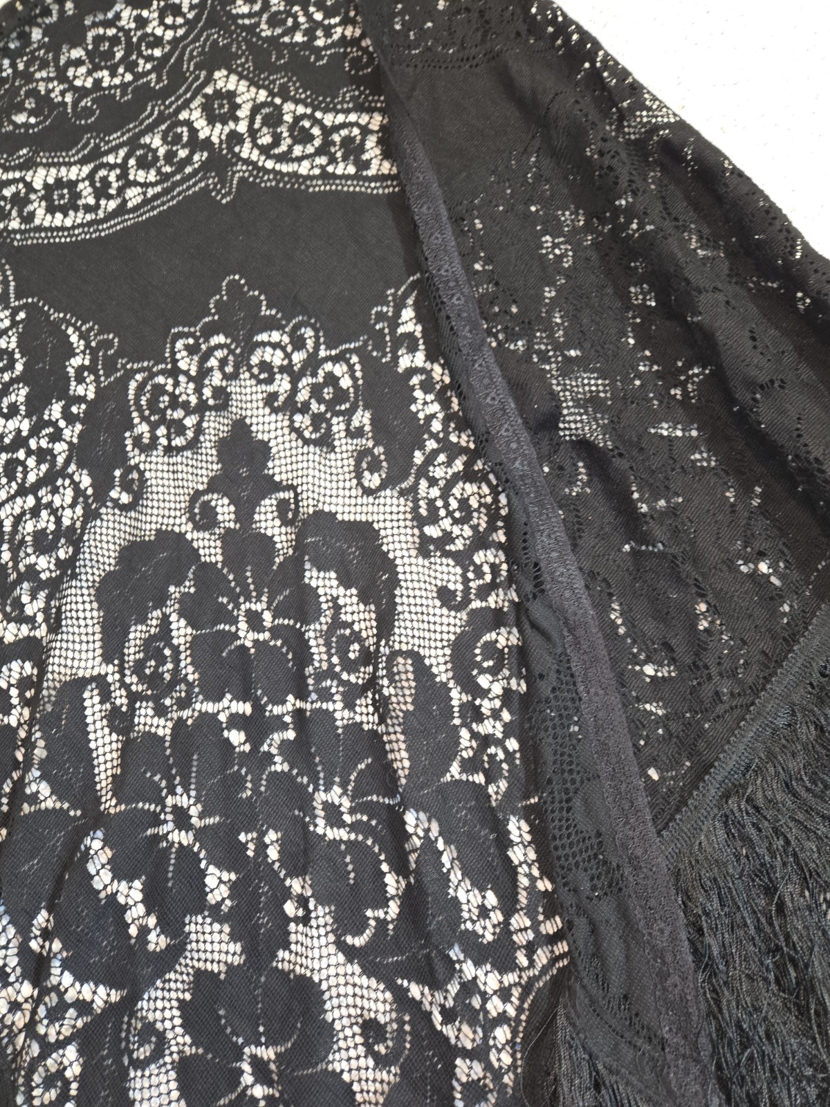 Black Lace Shawl Floral Pattern Fringe Dark Romantic Victorian Whimsy Goth