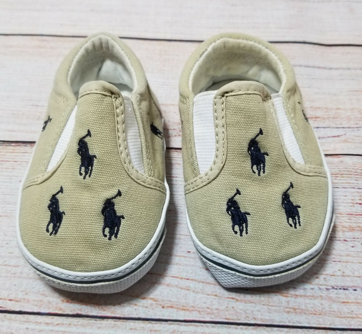 Polo Ralph Lauren Shoes Bal Harbour Child Sz 3 Slip On Beige Blue Canvas Pony