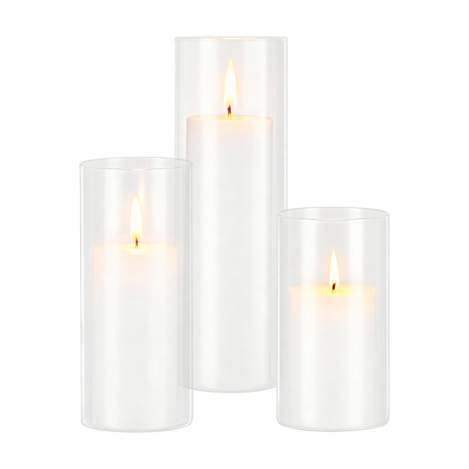 Uimoso Set of 24 Pillar Candles with Glass Vases, 2.6x4.7/5.9/7.9