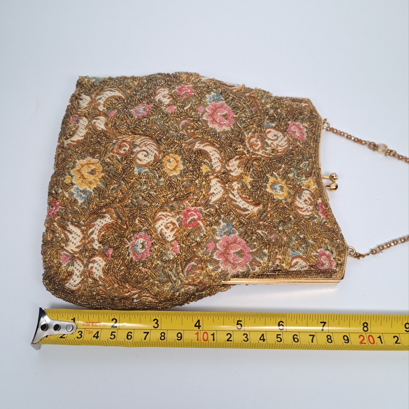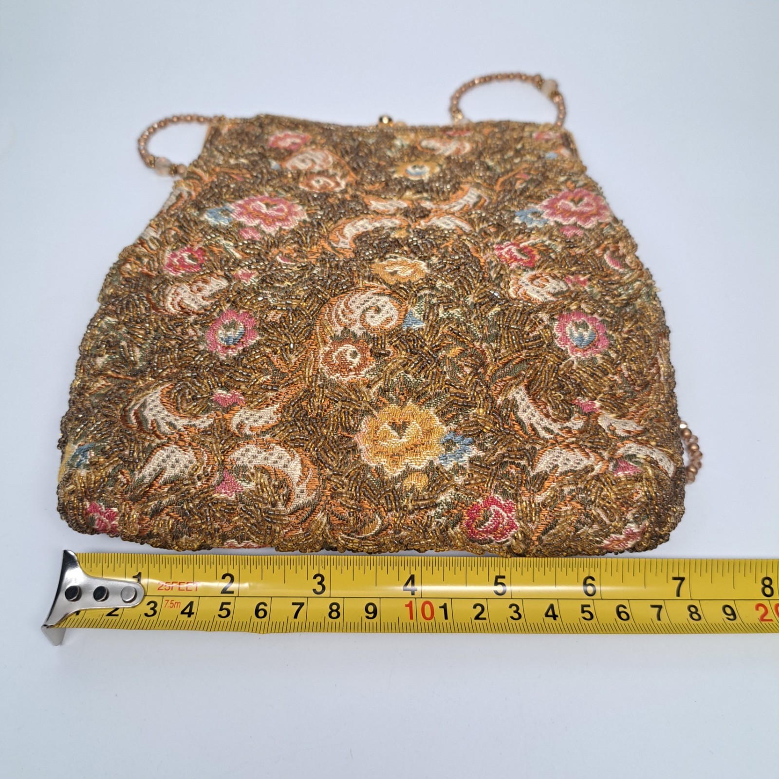 как выглядит Vintage Walborg Hand Beaded Embroidered Purse Evening Bag Floral Kiss Lock 1960s фото