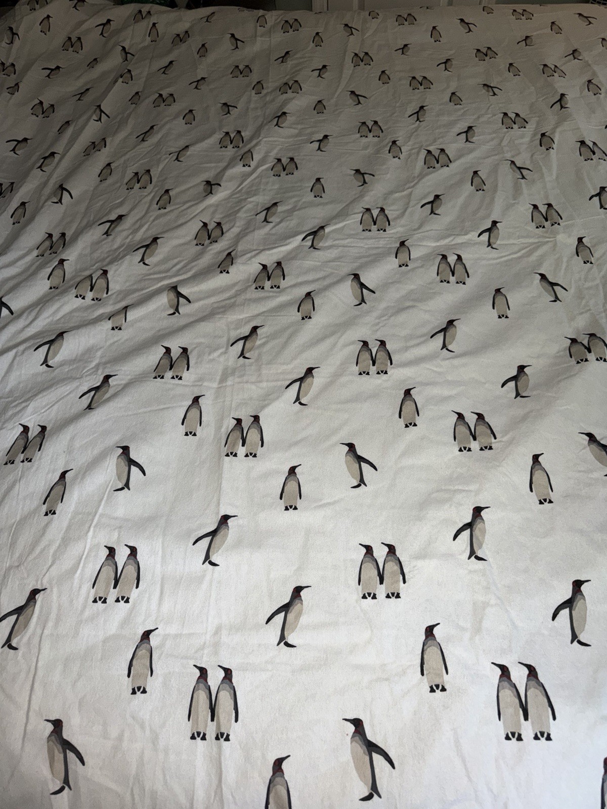 как выглядит Eddie Bauer Home Flannel Queen TOP SHEET 100 Cotton - PENGUINS - EUC фото