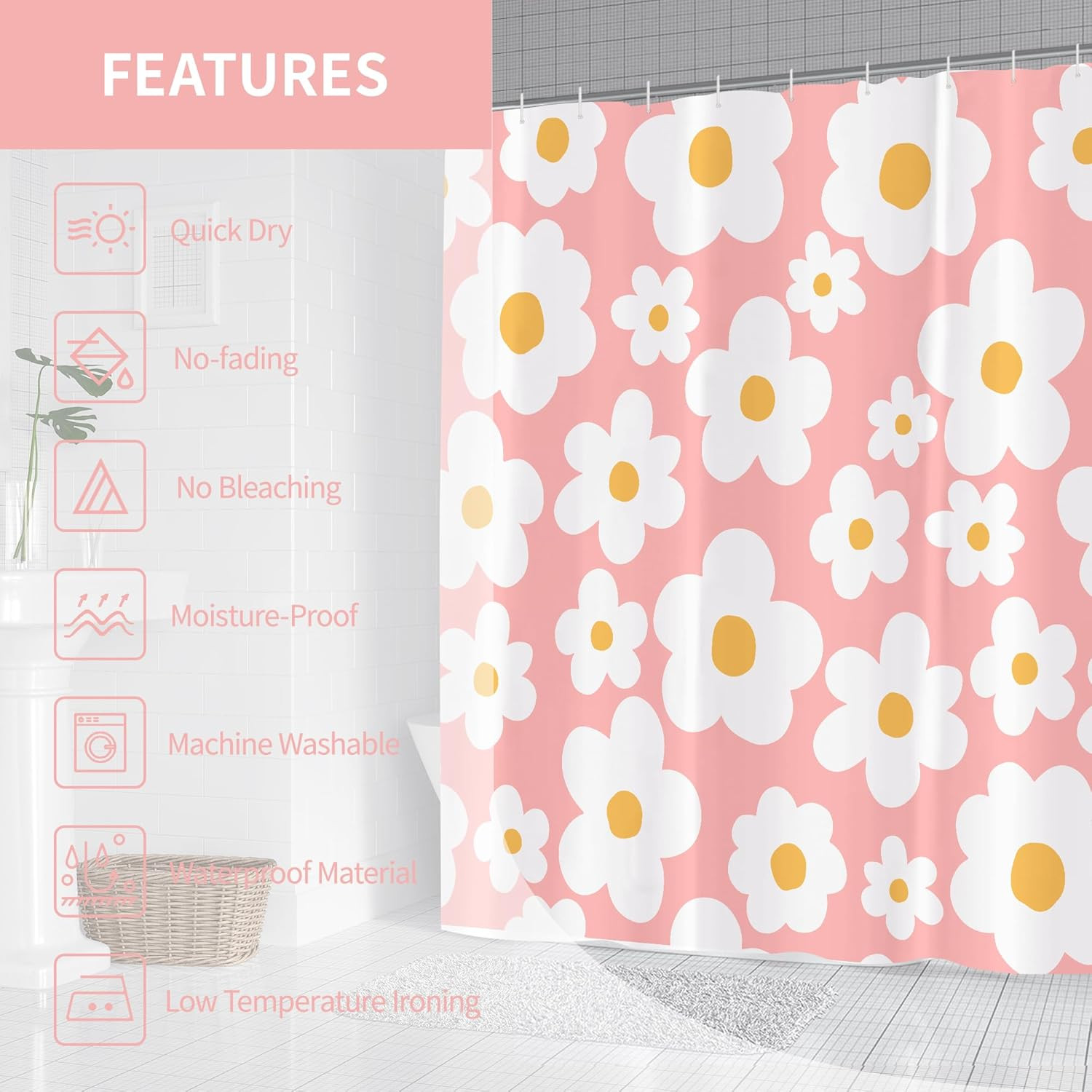 как выглядит Cute Retro Boho Pink Floral Aesthetic Abstract Funky Girly Shower Curtain for Ba фото