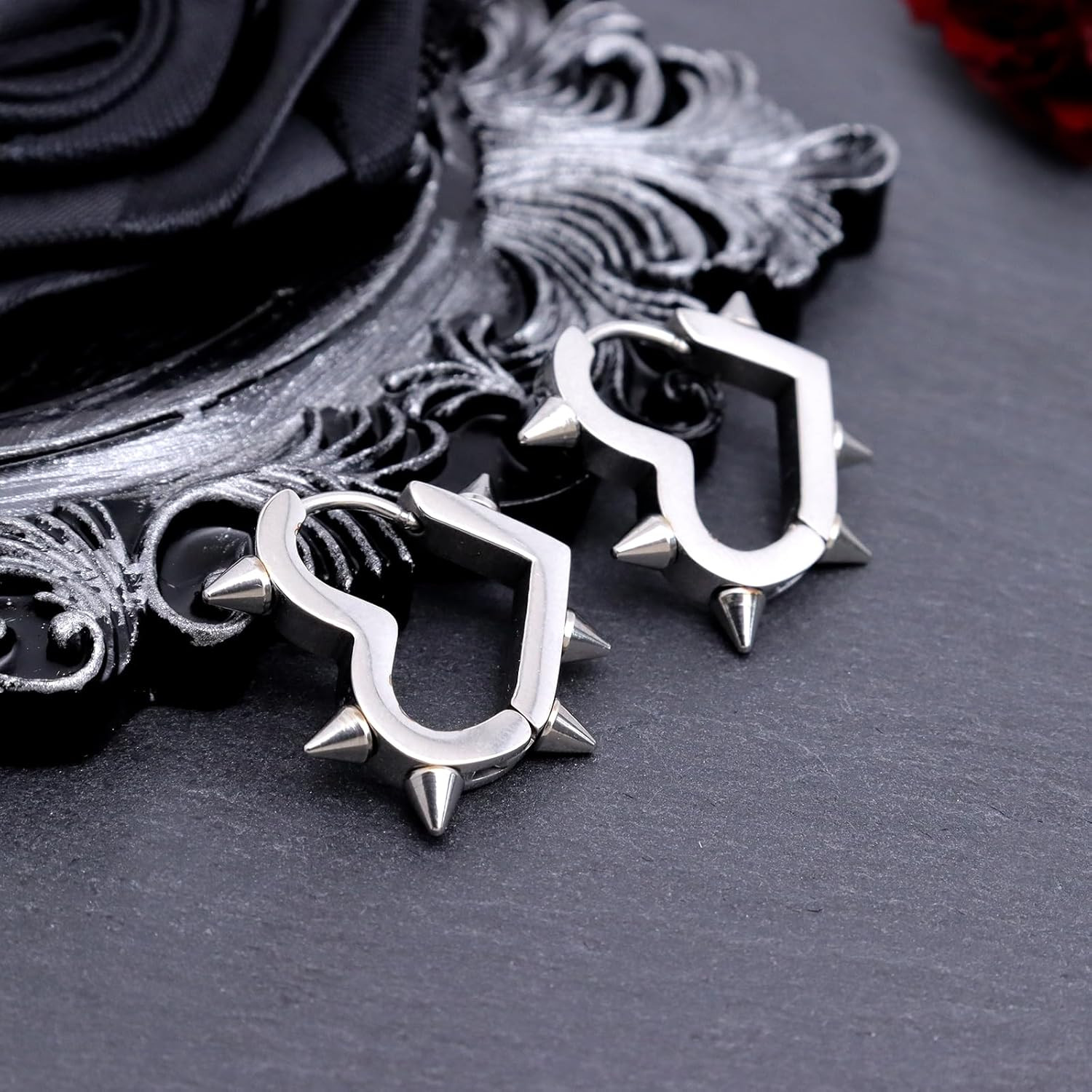 Hoop Spike Heart Earrings for Women, Gothic Punk Grunge Emo Y2K Earring Goth Jew