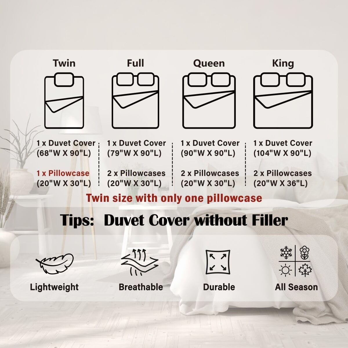 Included Components: Duvet Cover, Pillowcase