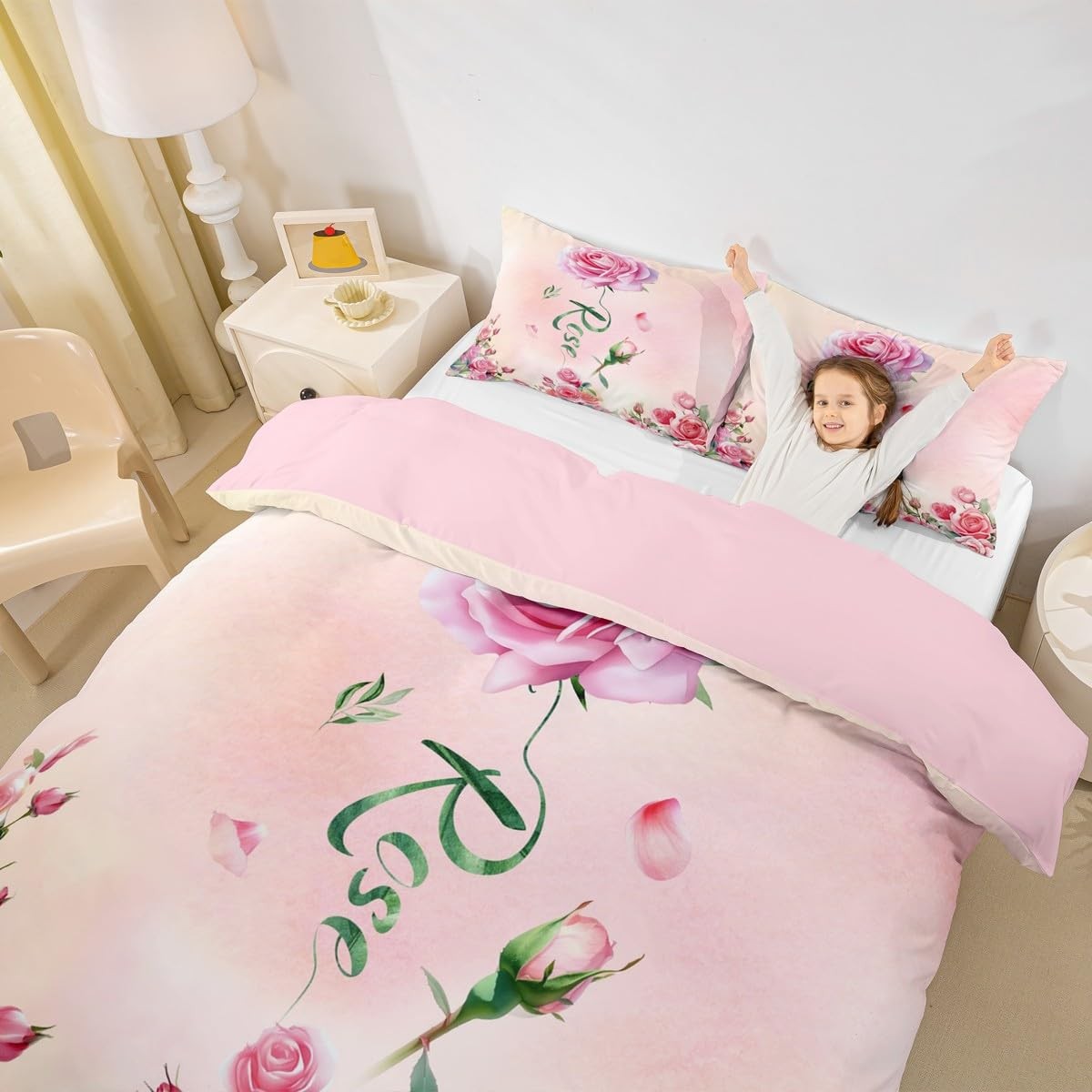 как выглядит Pink Rose Duvet Cover Set Twin Size,2 Pcs Breathable Garden Flowers Bedding S... фото