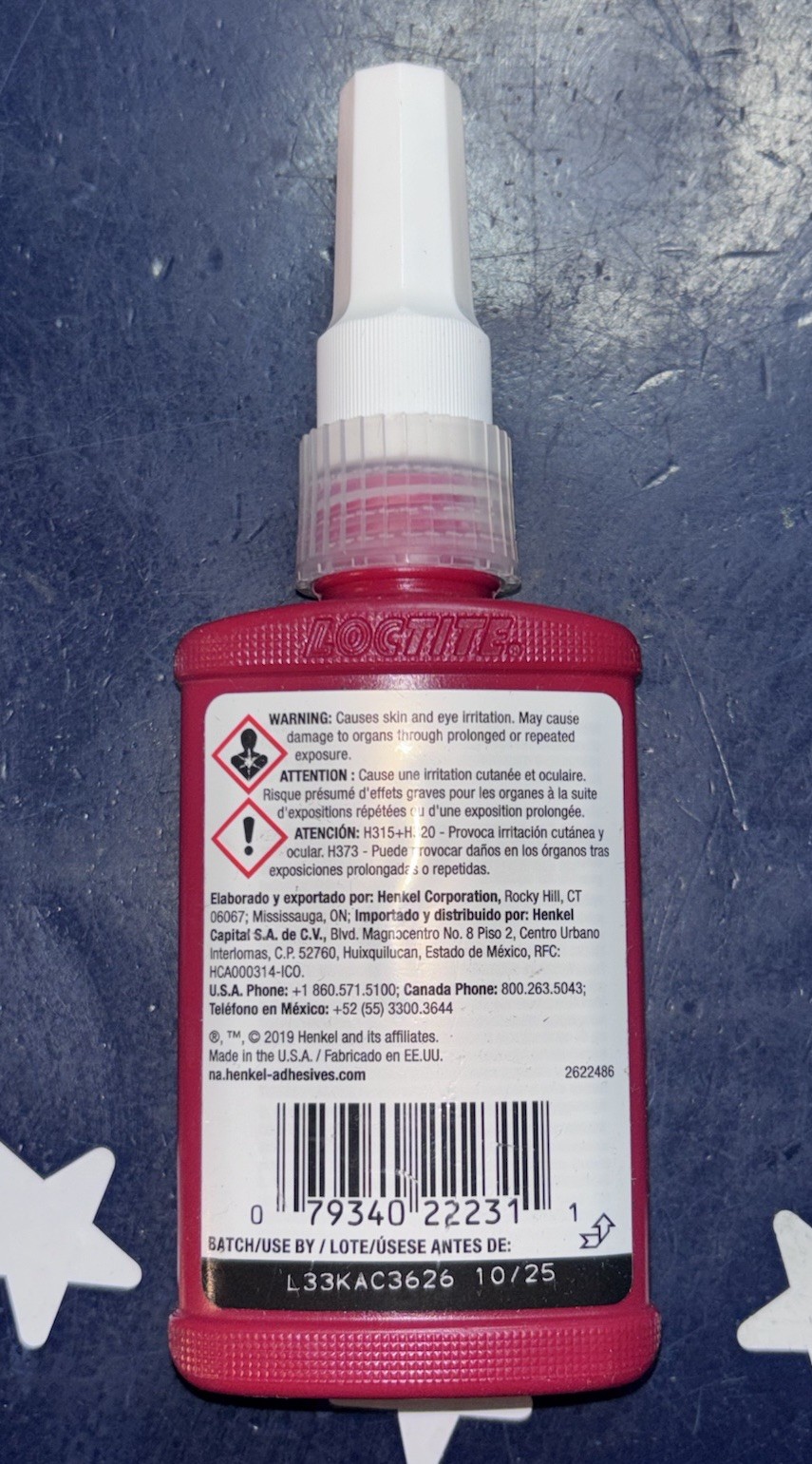 Loctite 222MS 50mL Low Strength Thread Locker 1.69oz EXP 10/2025 135334 22231