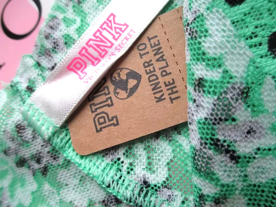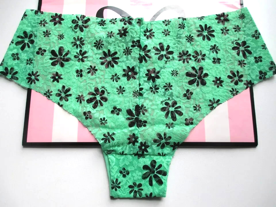 как выглядит VICTORIAS SECRET PINK No Show Lace Cheeky Panty VS Green Black Daisy M XL 2XL фото