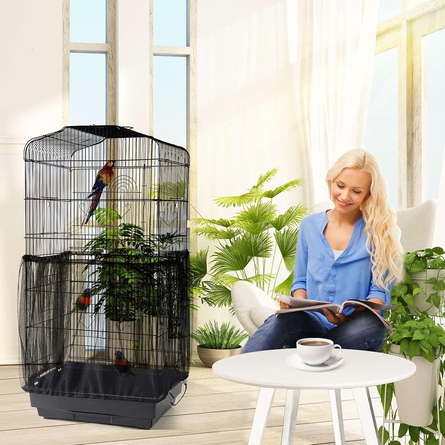 как выглядит Bird Cage Netting Seed Catcher Adjustable Bird Cage Skirt Seed Catcher Large Sof фото