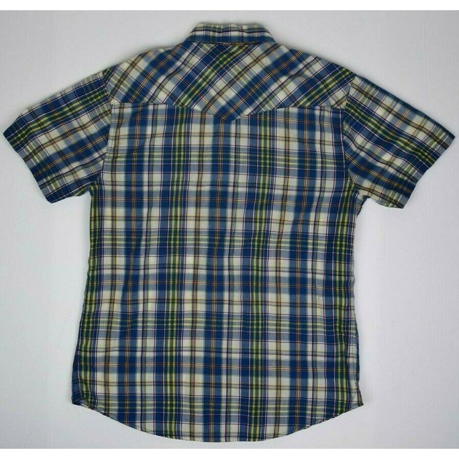 как выглядит Vintage Levis Western Shirt Size M 80s 90s Blue Plaid Pearl Snap SS Grunge фото