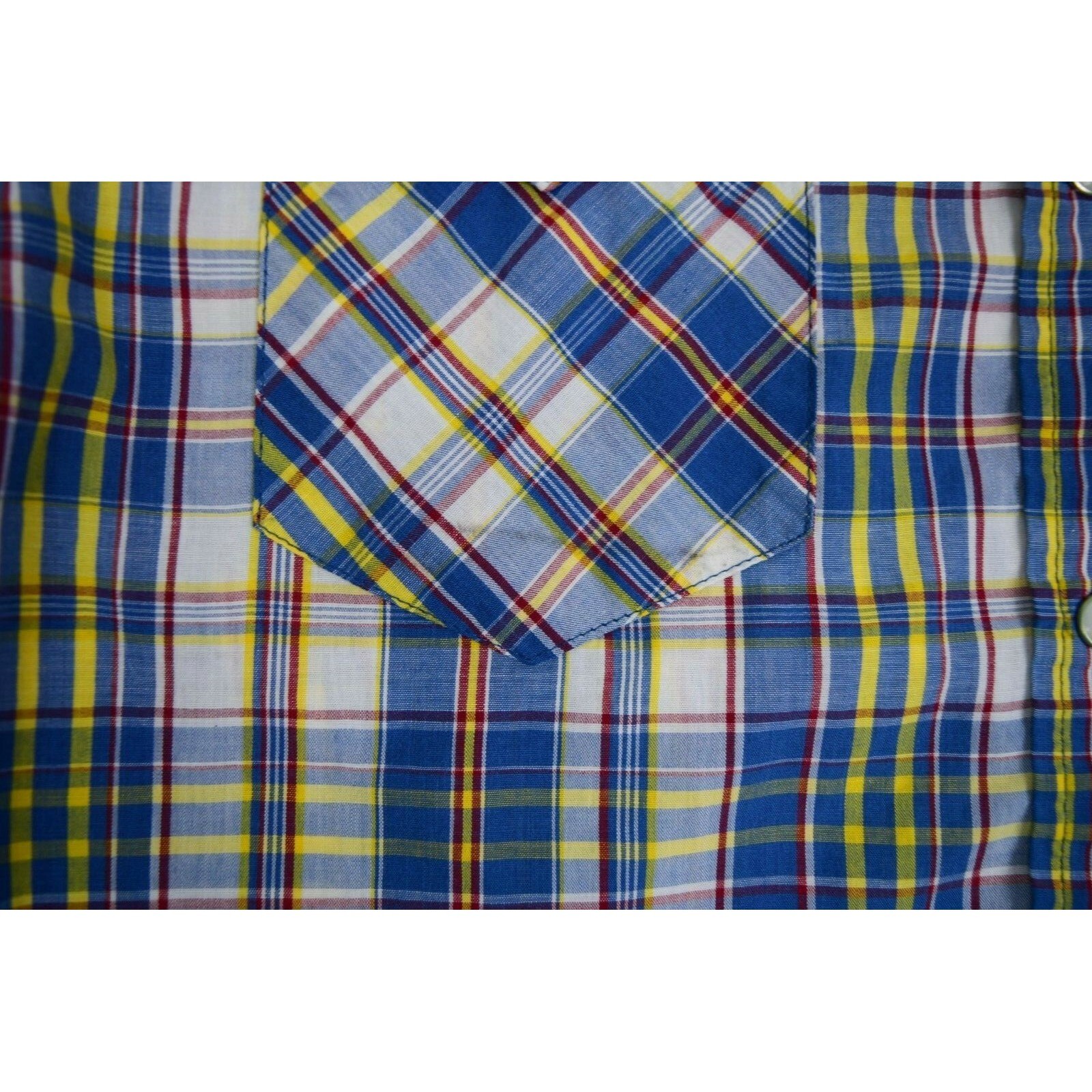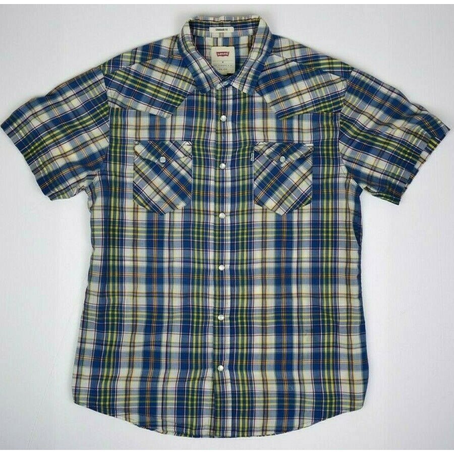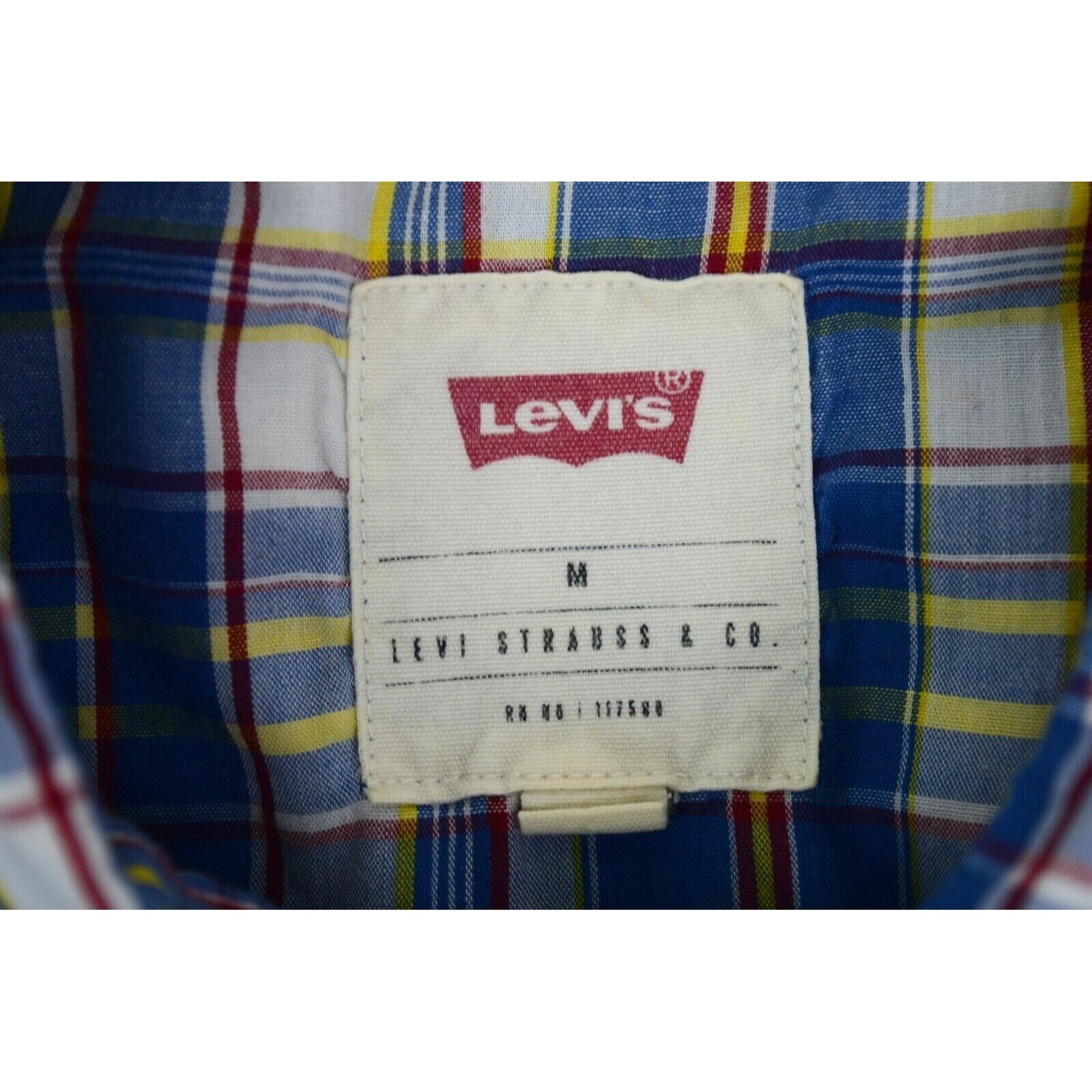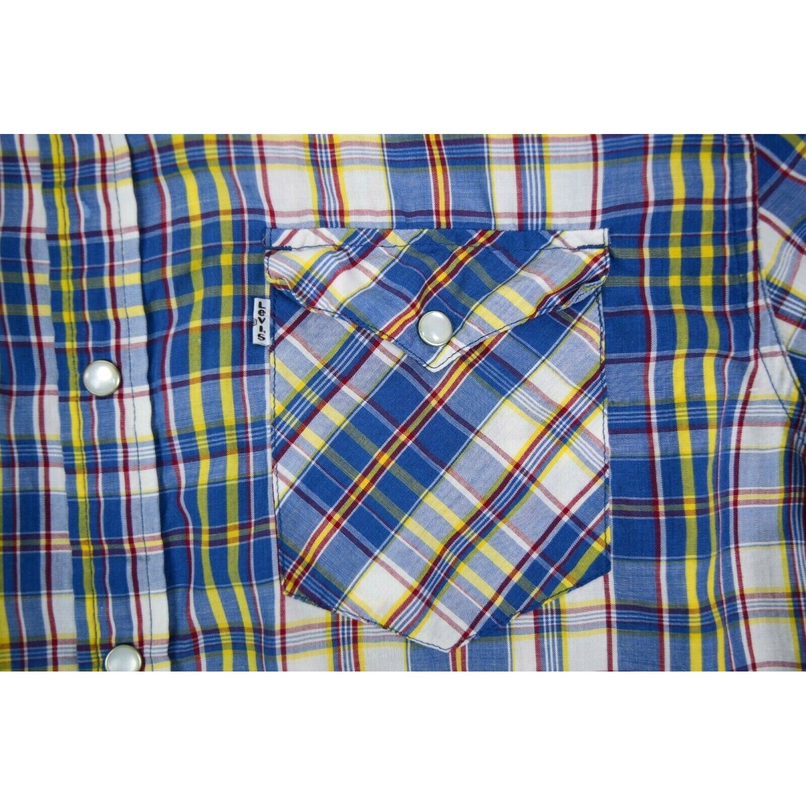 Vintage Levi's Western Shirt Size M 80s 90s Blue Plaid Pearl Snap SS Grunge