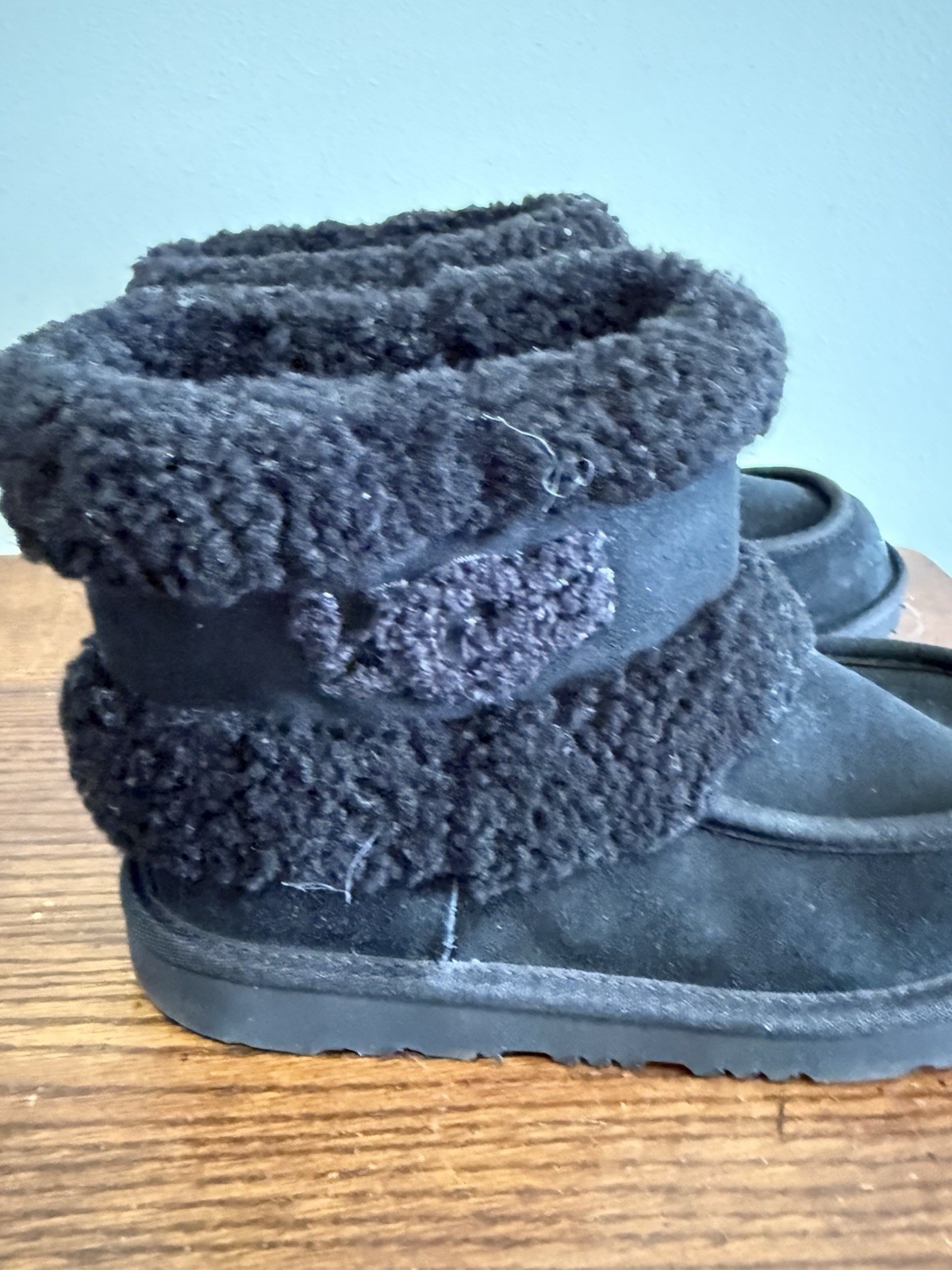 как выглядит UGG ULTRA MINI FLUFF Big Kid ANKLE BOOTS Black US KID 4 фото