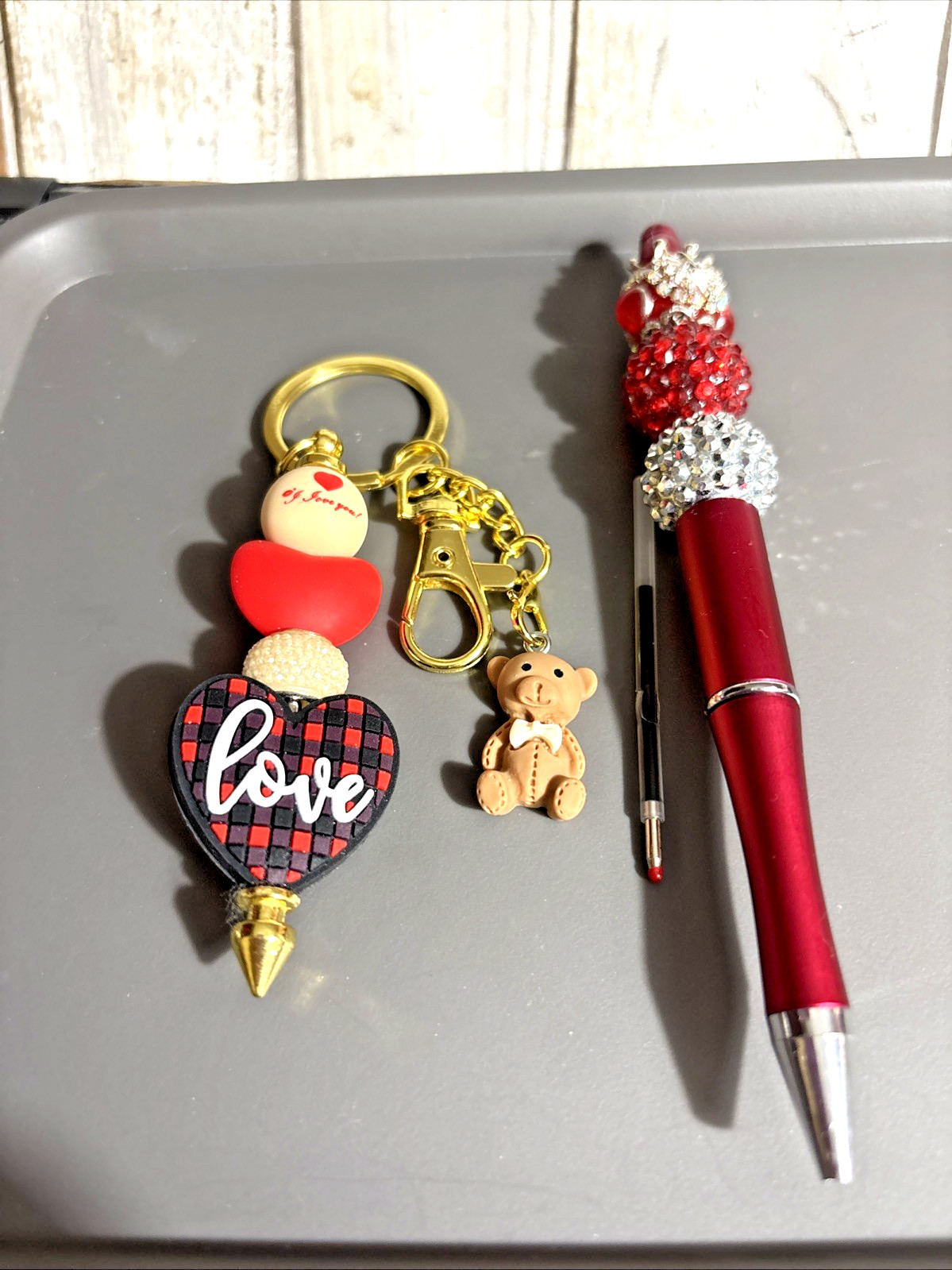 HAND MADE BEAD PEN AND BEAD KEY CHAIN INK REFILL- Valentines day