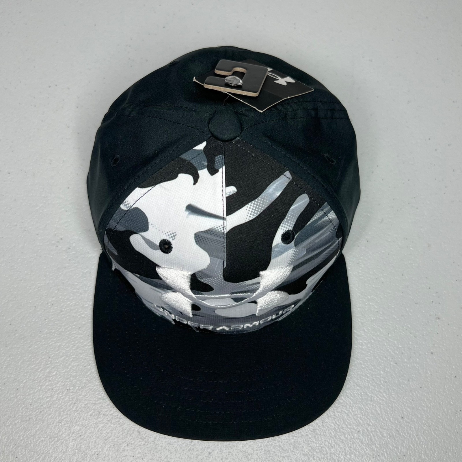 Under Armour Camo Hat Cap Boys Youth OSFM Snapback Adjustable Black White Gray