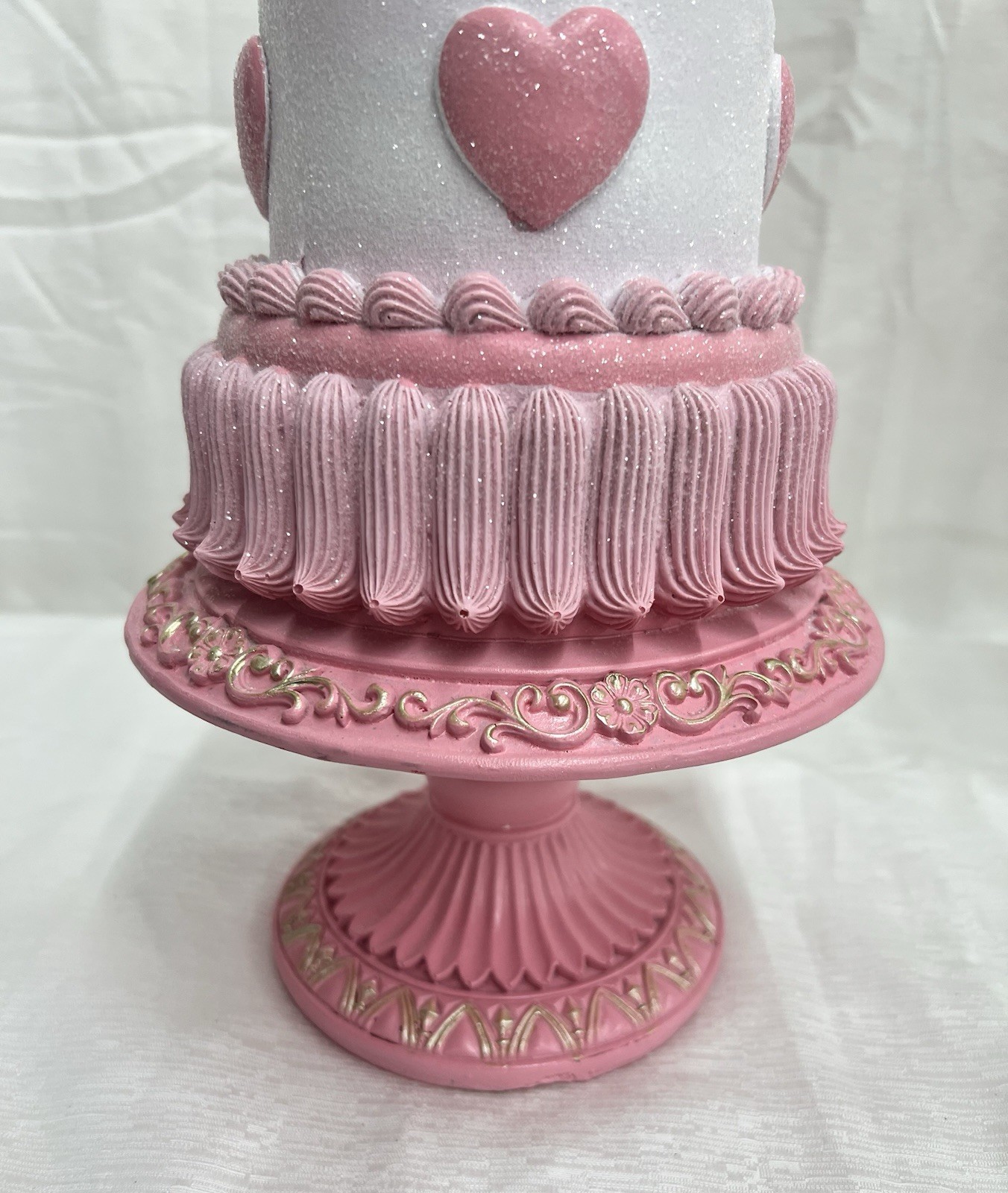 New TikTok Viral Pink Gold White Heart Tiered Faux Valentines Cake On Pedestal