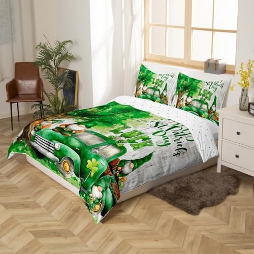 St. Patrick's Day Duvet Cover King Size Cute Gnomes Truck Car Bedding Set 3pcs