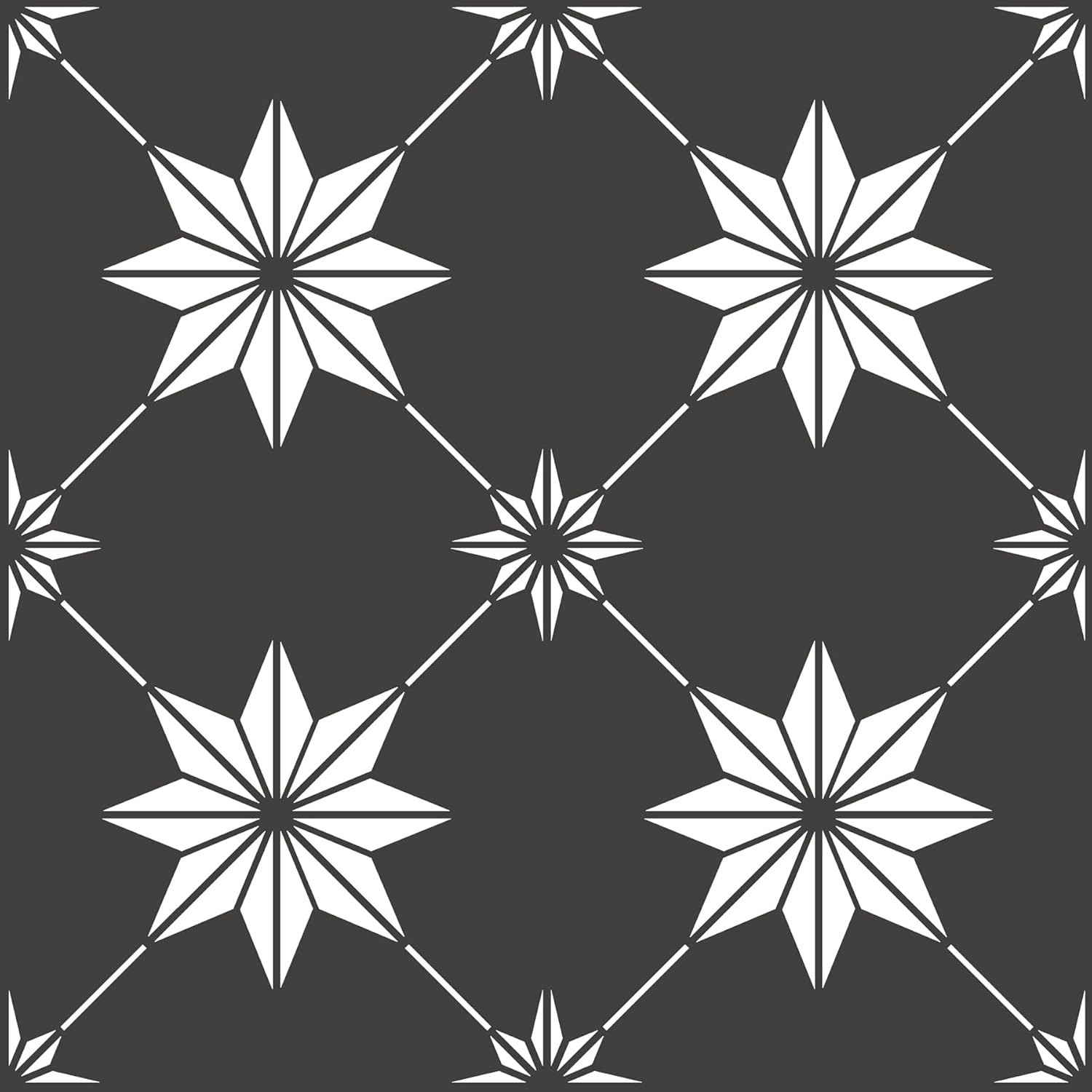Black Vinyl Peel Stick Floor Tiles 12x12in Modern Floral Water Resistant