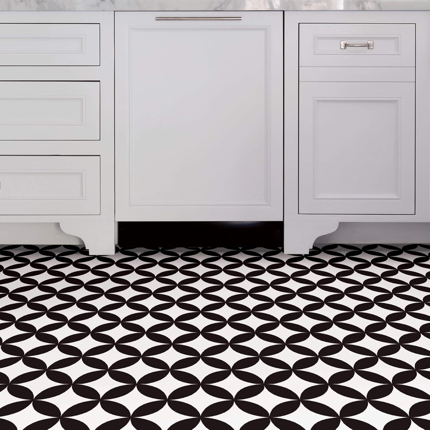 Black Peel Stick Floor Tiles 12x12 Floral Pattern Waterproof Easy Install