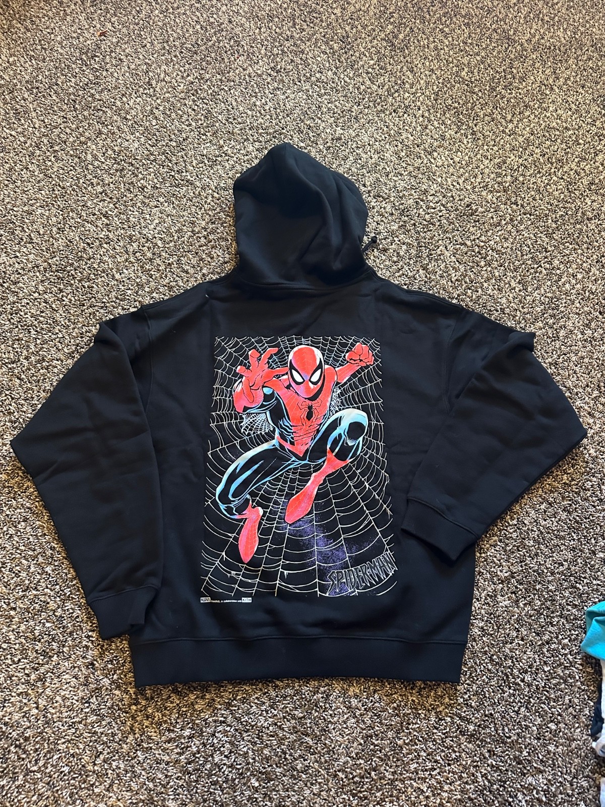 как выглядит BRAND NEW Kith X Spider-Man Web Logo Hoodie - Black - large фото
