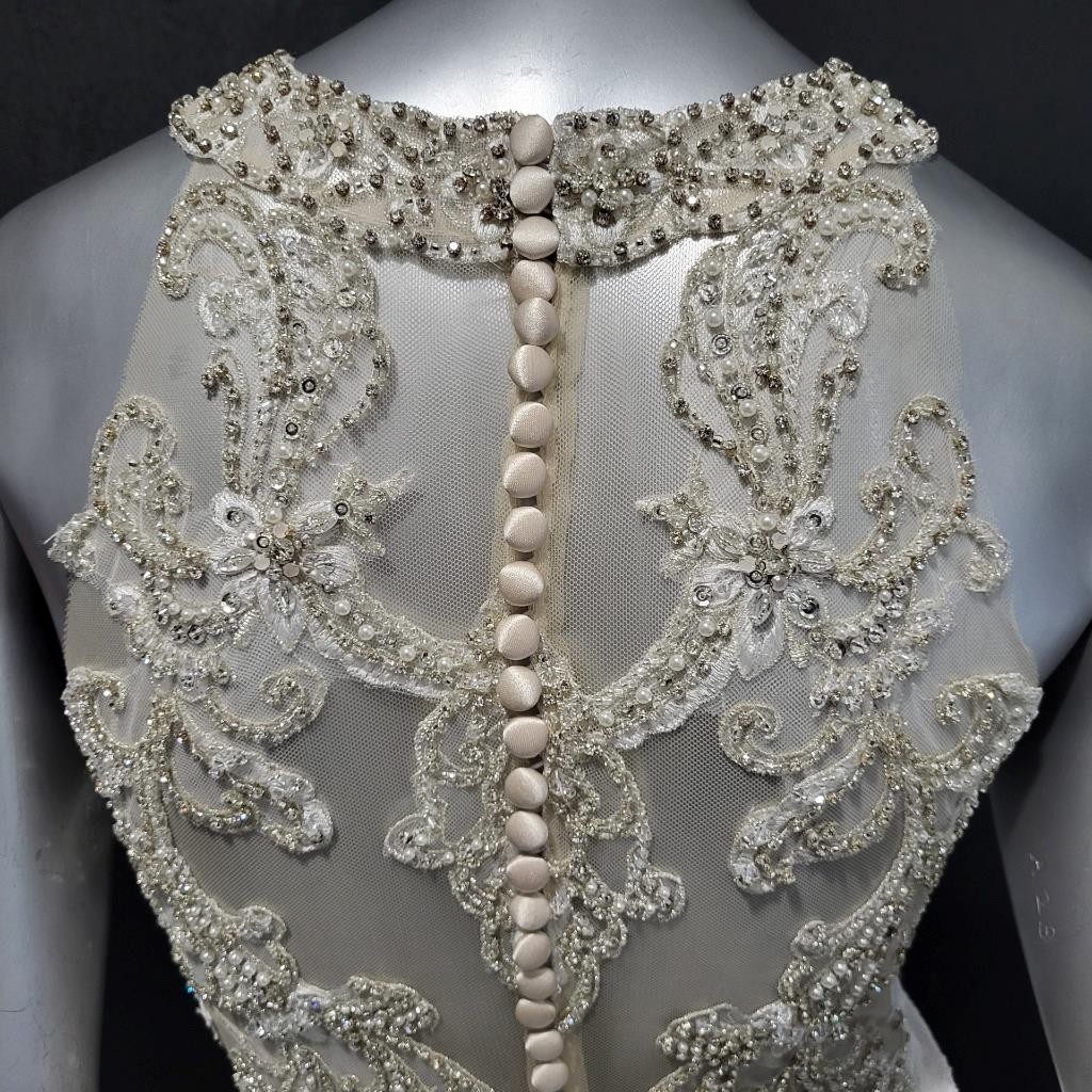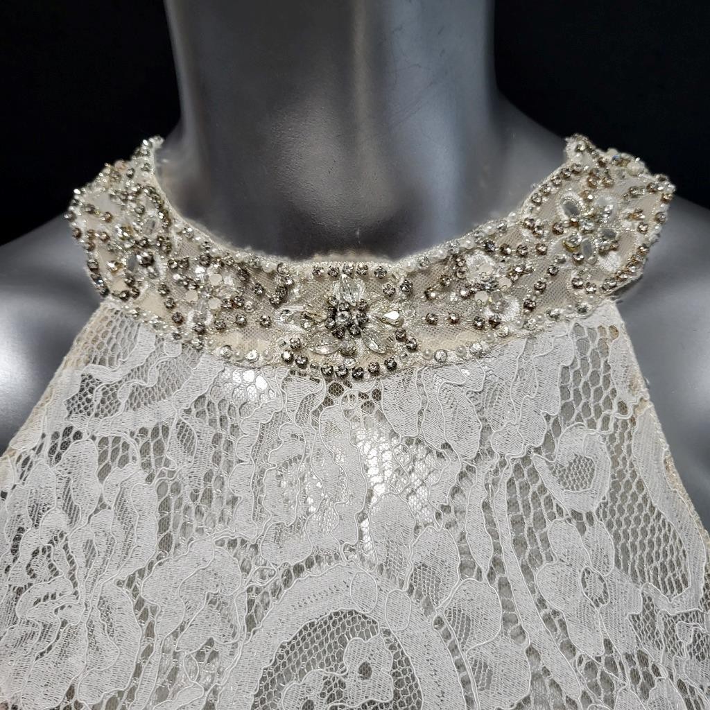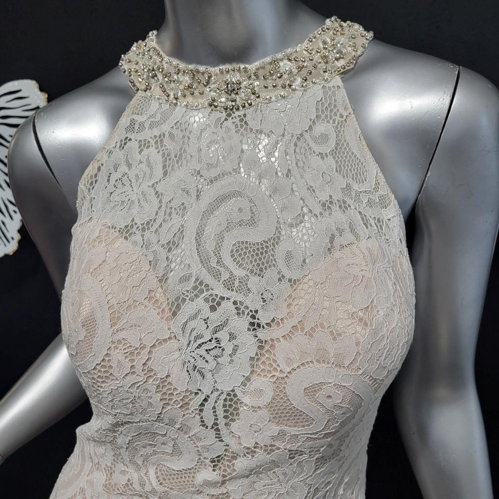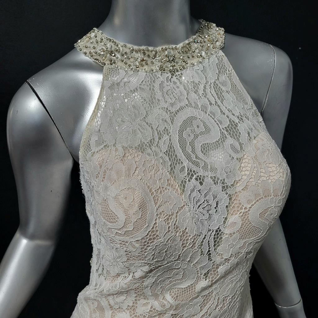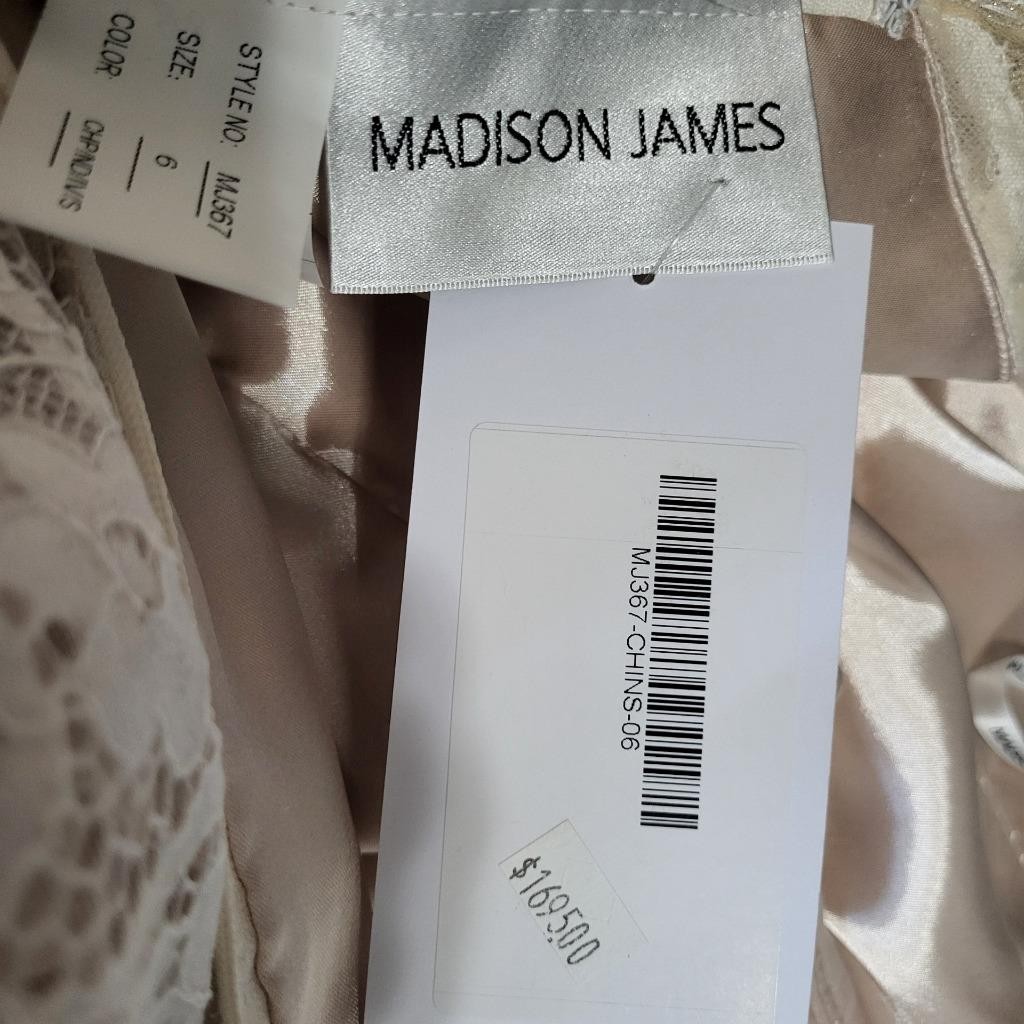 как выглядит NWT 1695 MADISON JAMES SZ 4 CHAMPAGNE IVORY LACE FIT FLARE WEDDING DRESS фото