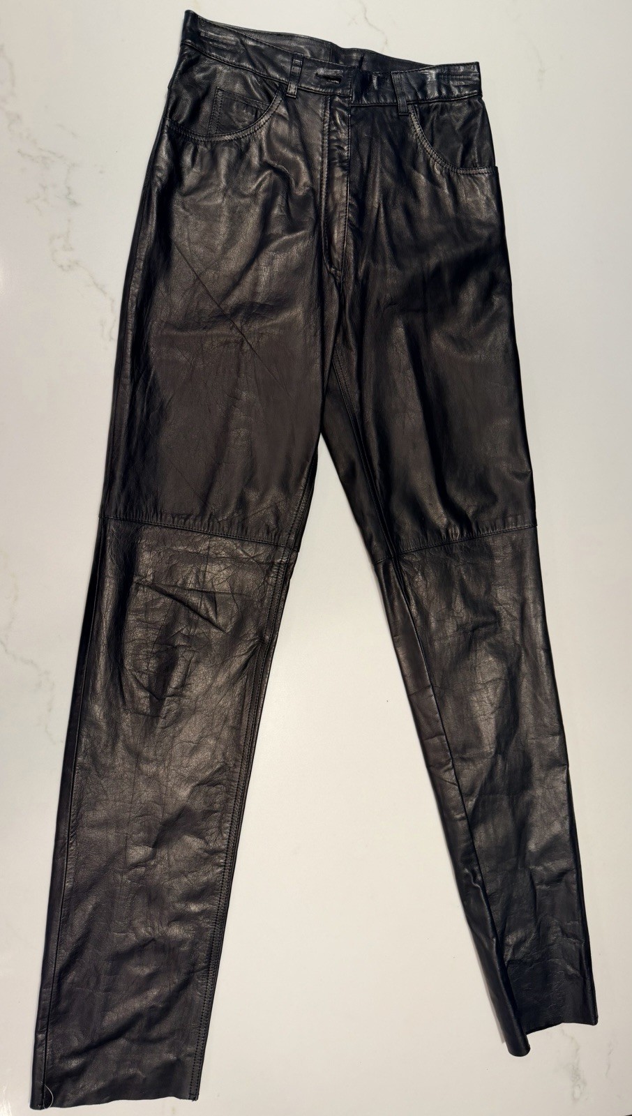 как выглядит Vintage PIA RUCCI Black Leather Pants High Rise Pleated Italy 90s 27x33 фото