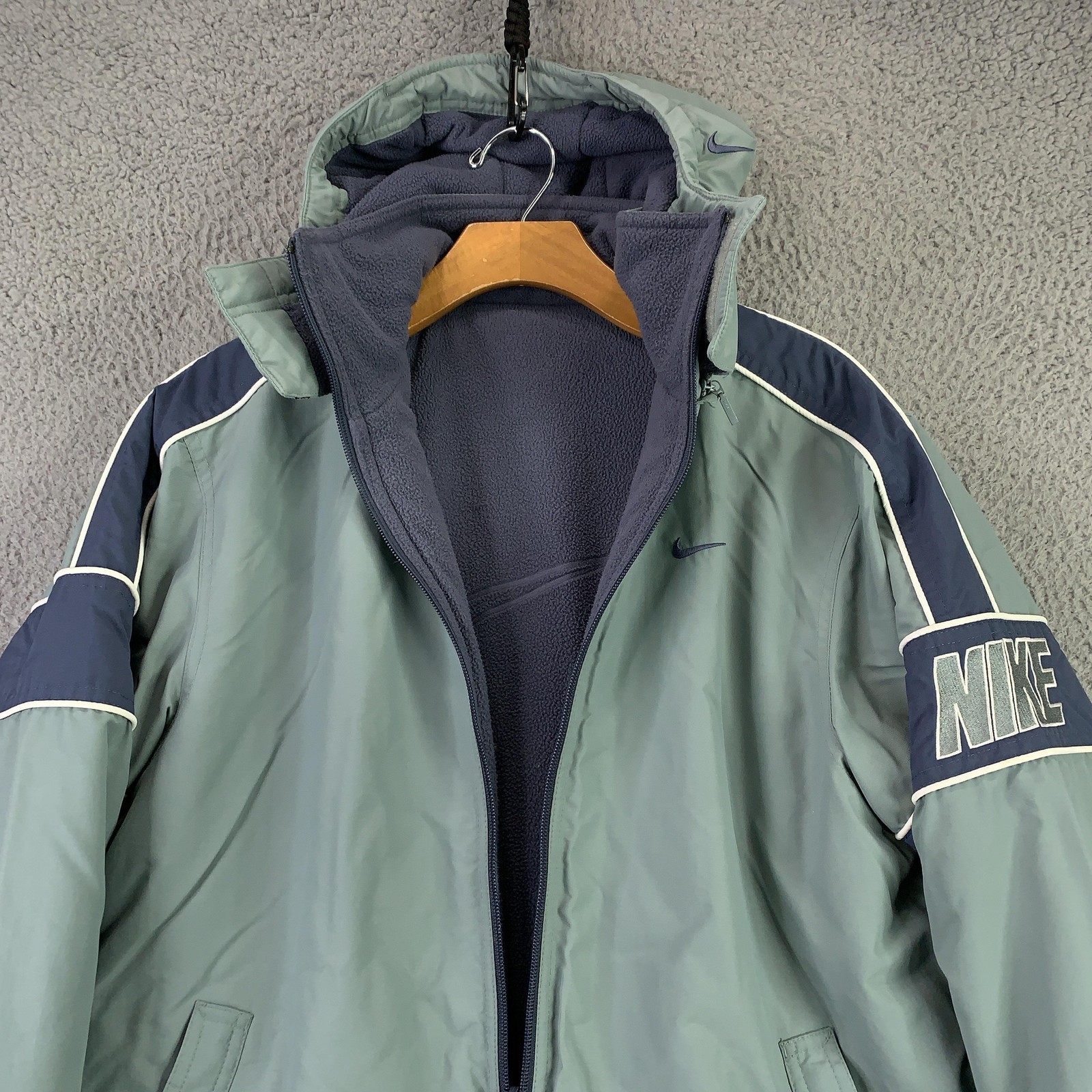Vintage Nike Jacket Youth Medium Green Blue Reversible Fleece Hooded Puffer Coat