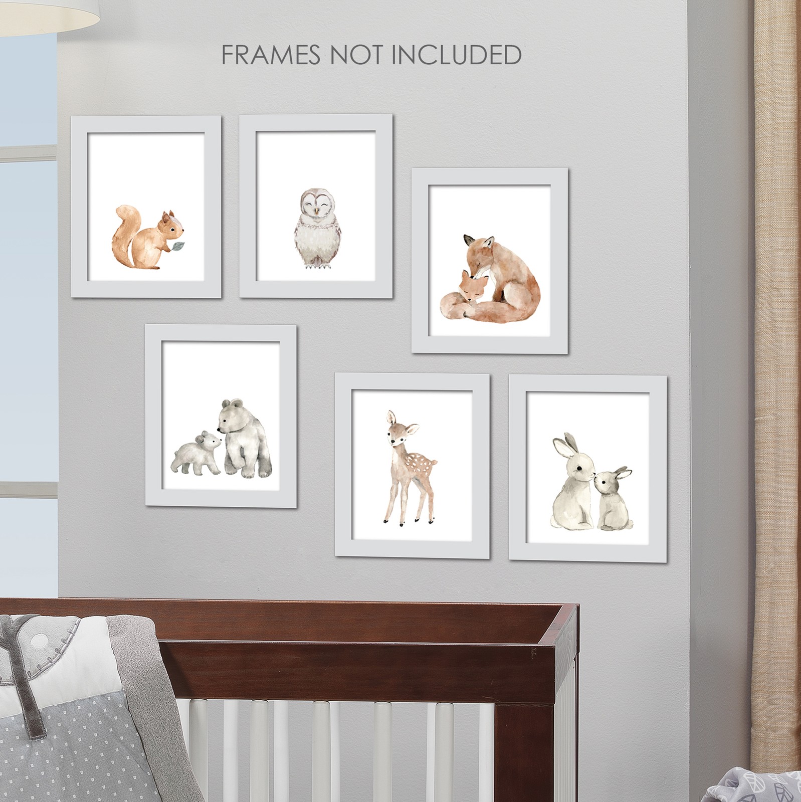 Lambs Ivy Watercolor Woodland Animals 6-Piece Unframed Nursery Wall Art Decor