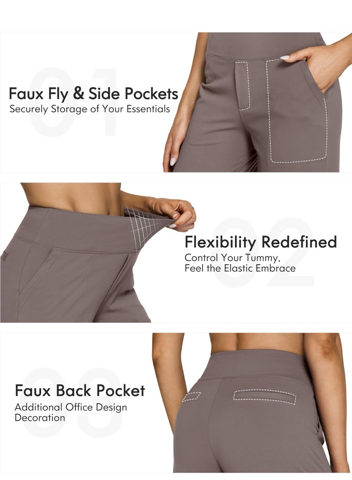 G4Free Yoga Pants Wide Leg with Pockets High Waist Stretch Dress Taupe L