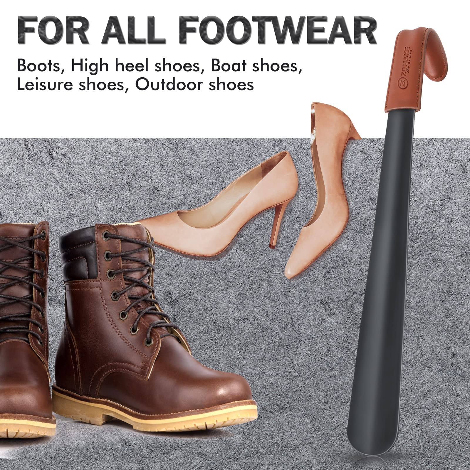 как выглядит ZOMAKE Shoe Horn Long Handle for Seniors Men 16.5 Inch, Brown фото