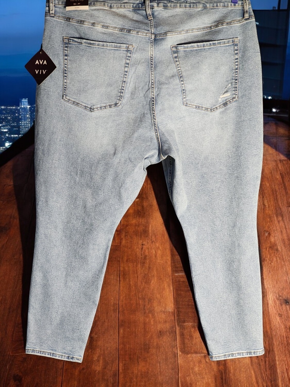 как выглядит Ava Viv Women s Plus Size Blue High Rise Skinny Distressed Denim Jeans фото