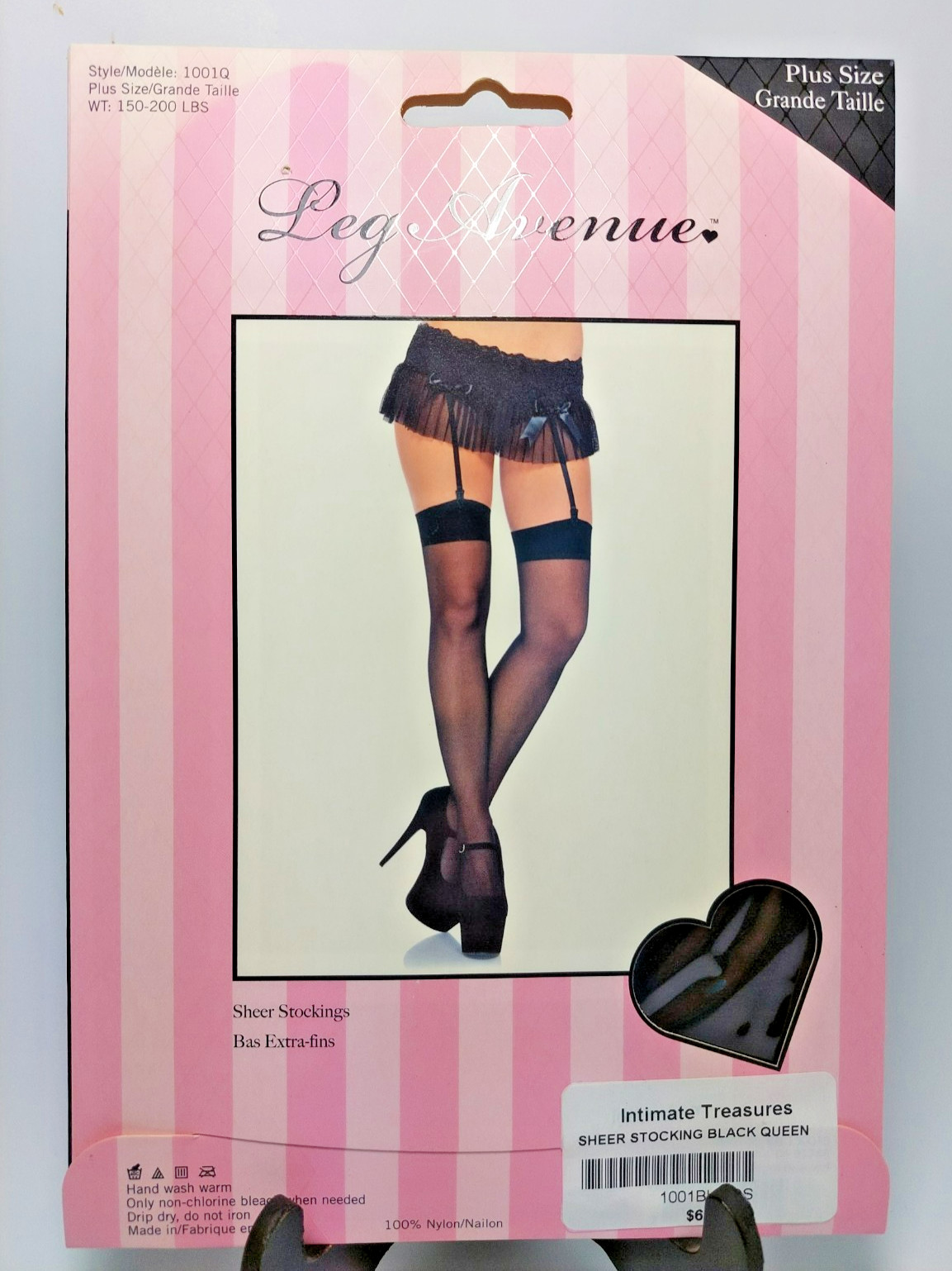 Leg Avenue Black Thigh High Stockings Sheer Nylon Plus Size Style 1001Q New