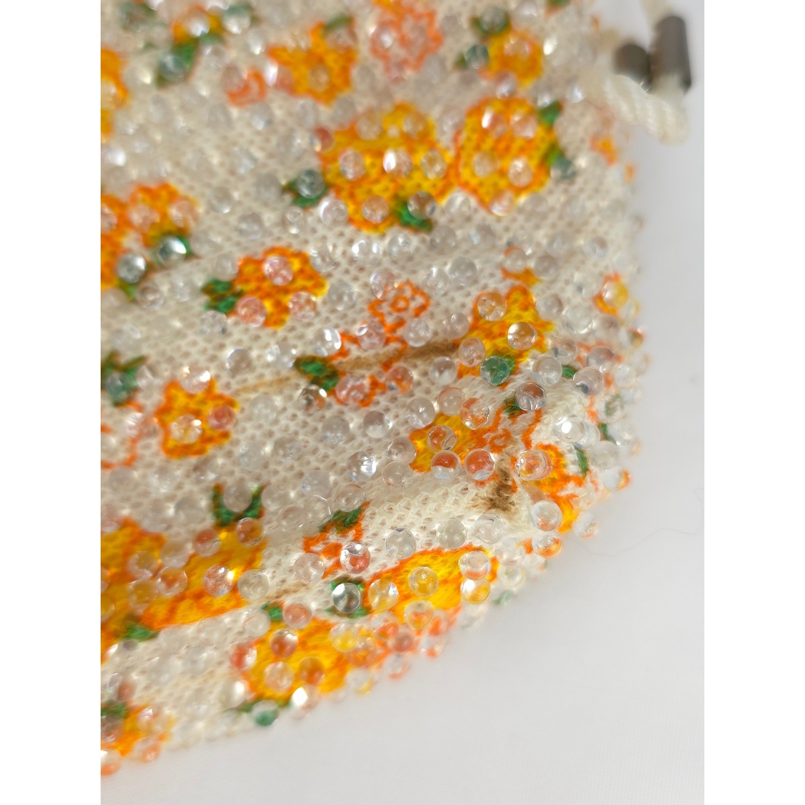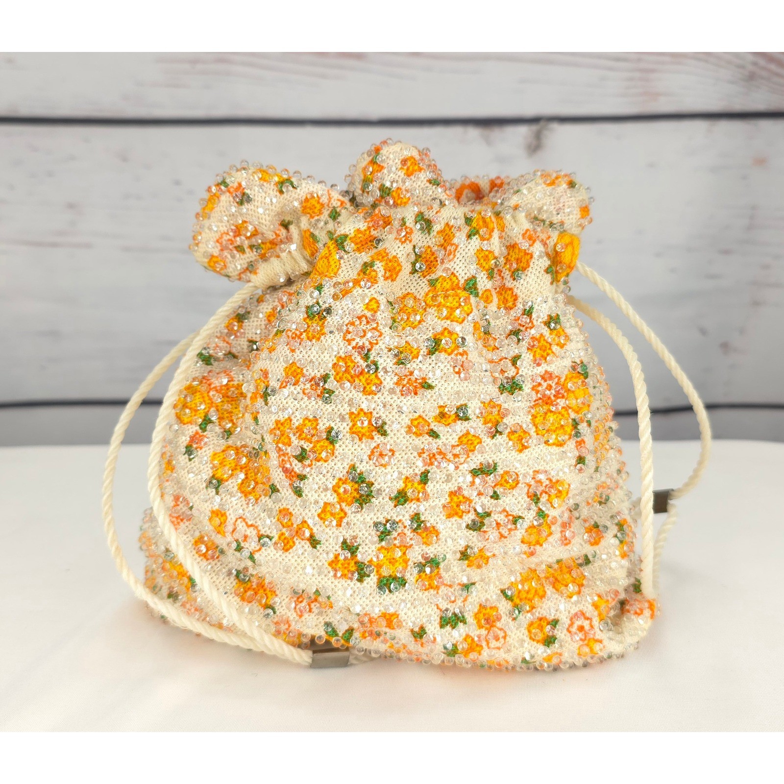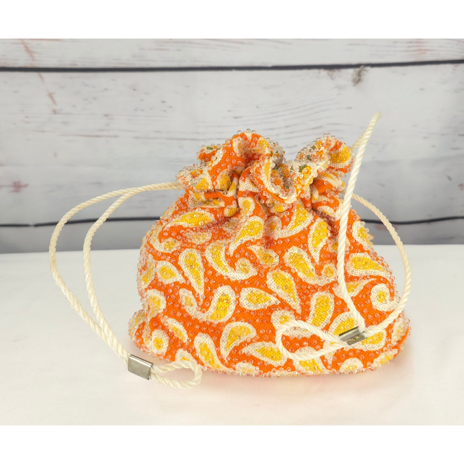 Vintage Reversible Beaded 1960's Drawstring Floral Paisley Pouch Purse