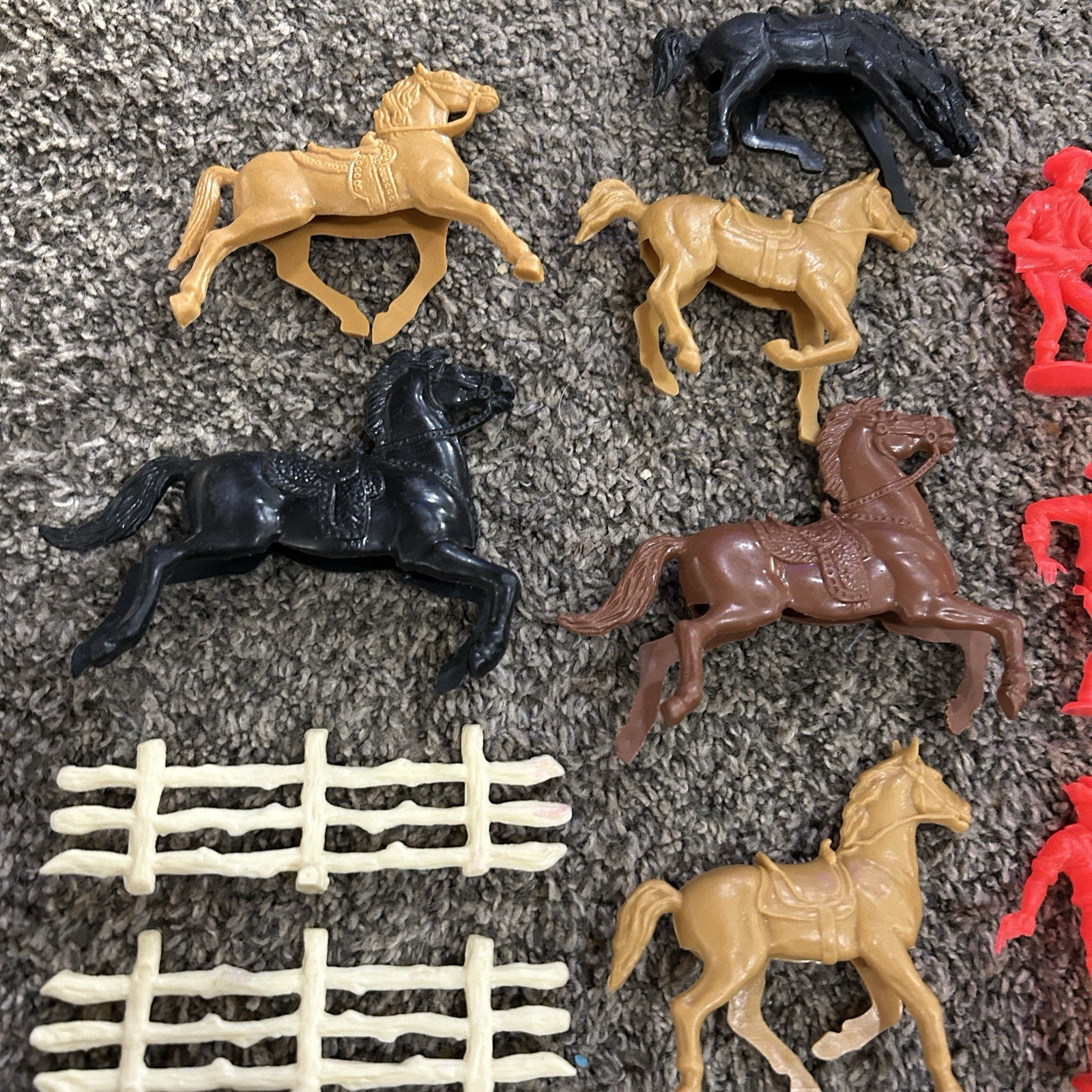 VTG Plastic Cowboys and Horses Fences Toys Lot of 26 Marx Tim-Mee