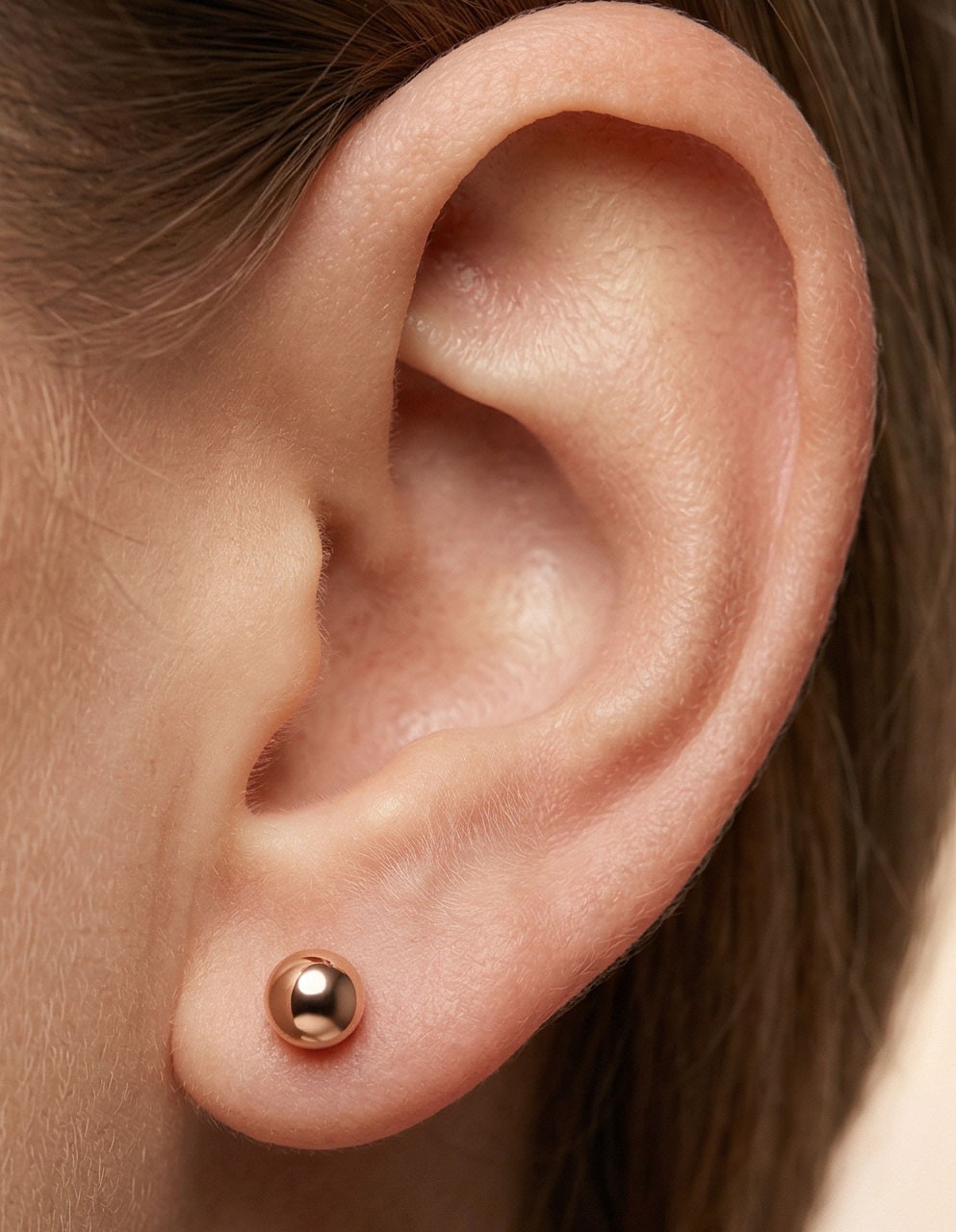 как выглядит BALL SMALL 2 mm STUD EARRINGS 14K SOLID ROSE GOLD - Made in USA - NEW WITH TAG фото