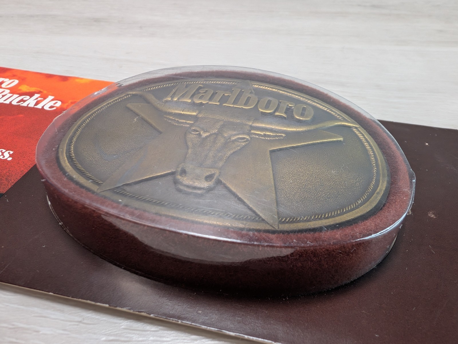 как выглядит Vintage 1987 MARLBORO Western Steer Star Promo Belt Buckle Tobacco Solid Brass фото